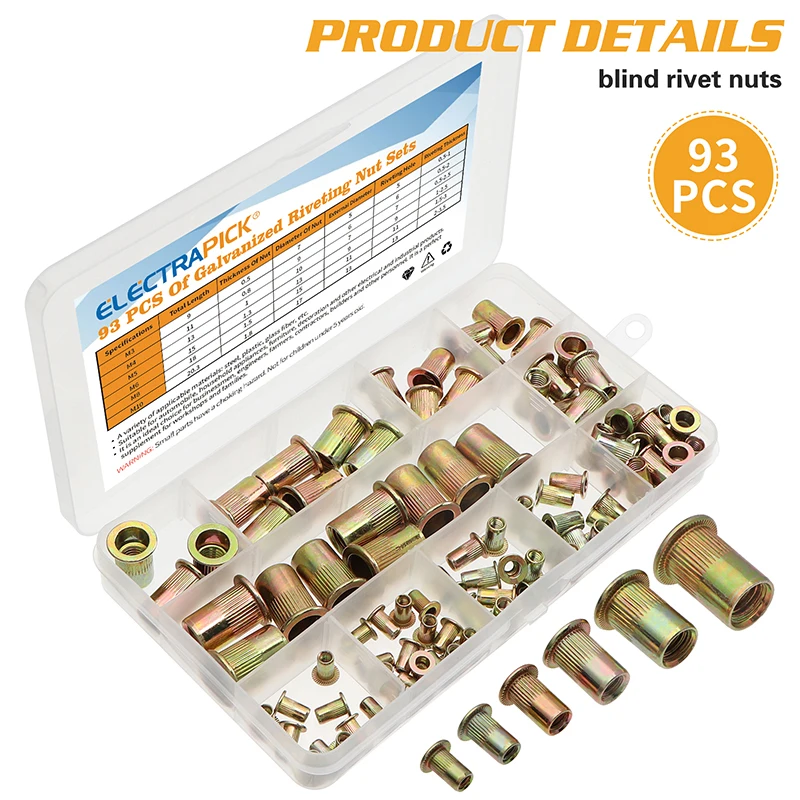 4. Различные Применимые материалы, заклепки гайки могут быть установлены в различных материалах, включая сталь, пластик и стекловолокно.