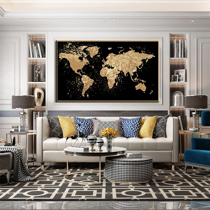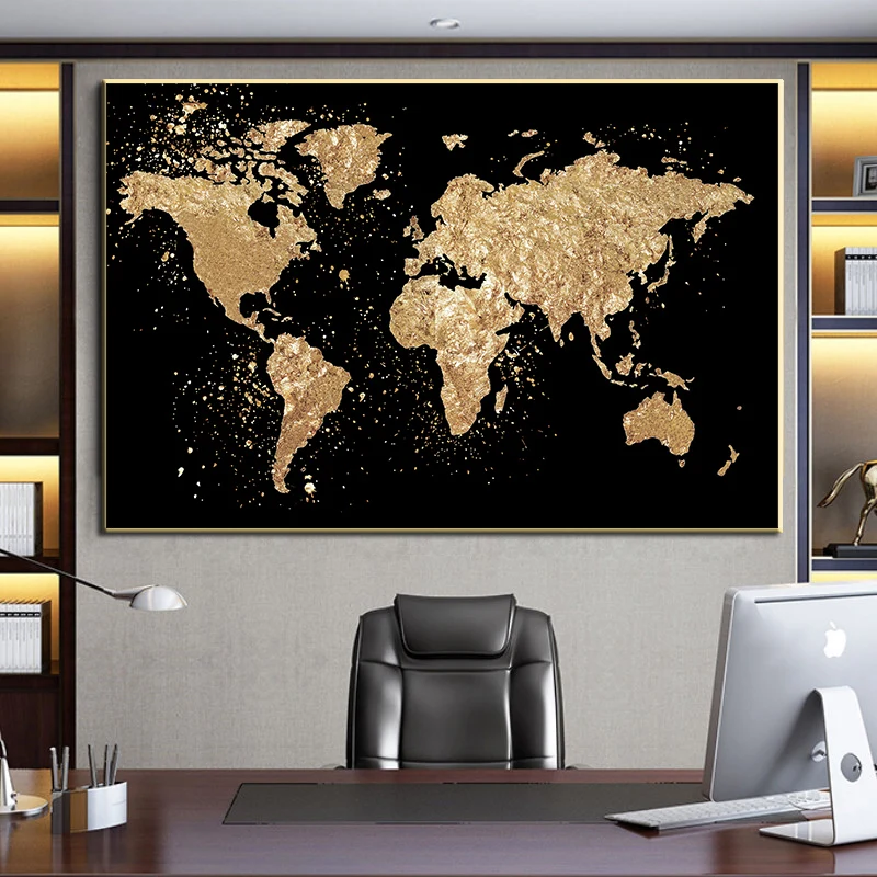 Современная Карта Плакат мира и принты Золотая карта мира холст живопись Настенная живопись для гостиной Кабинета офиса Декор