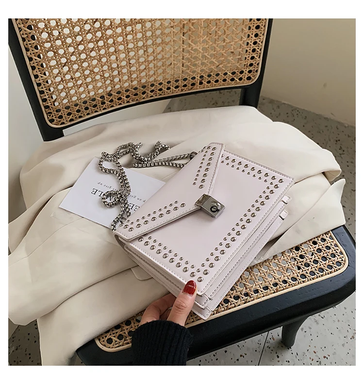 Женская сумка через плечо, небольшая дизайнерская сумка с цепочкой и заклепками, 2021