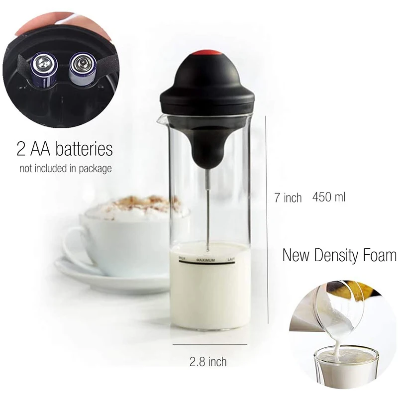 Быстрый сливочный этот Пенообразователь для кофе с двойной пружиной способен приготовить пенное молоко за 20 секунд или меньше. Идеальная машина для вспенивания молока для кофе, латте, капучино, горячего шоколада, эспрессо, миндального молока. Хорошо будет работать как с горячими, так и с холодными жидкостями.Портативный для путешествий наш миксер-палочка для вспенивания кофе оснащен головкой с двойным венчиком, более мощным и эффективным, отвечает различным потребностям. В нашем обновленном портативном вспенивателе молока используются батарейки АА 2*1,5 В. Этот аккумулятор для вспенивания молока легко носить с собой куда угодно.Доступная цена лучшая пенка для кофе не только дешевая, но и довольно эффективная. Приготовьте горячее, теплое или холодное молоко: Освежите себя холодным, теплым молоком, чтобы приготовить капучино, латте, эспрессо и многое другое.Можно мыть в посудомоечной машине, легко использовать отличную капучино! Нажмите кнопку за секунды, чтобы насладиться Кремовым кофе. Поместите венчик для взбивания молока в горячую воду и нажмите на кнопку. Достаточно чистый. Стеклянный кувшин можно мыть в посудомоечной машине, его легко чистить.Этот стеклянный кувшин для вспенивания молока для кофе можно использовать в микроволновой печи-это кувшин большой емкости-термостойкий боросиликатный стеклянный стакан для вспенивания молока емкостью 450 мл/15 унций с максимальной линией заполнения. И безопасен в микроволновой печи для теплого вспенивания молока. Просто поместите стеклянный контейнер в микроволновку на 20 секунд.Приготовьте горячее, теплое или холодное молоко: Освежите себя холодным, теплым молоком, чтобы приготовить капучино, латте, эспрессо для вспенивания молока и многое другое. Электрический портативный вспениватель молока, от латте до капучино, доводит до совершенства любой кофе. Это лучший вспениватель для кофеОбъем молочной пены примерно удвоится. Оставьте пену на минуту и загустите.Кувшин для вспенивания молока изготовлен из прочного термостойкого боросиликатного стекла. Этот стеклянный вспениватель молока легко чистится.Во избежание разбрызгивания поместите головку этого кофейного венчика на дно молока во время вспенивания. Позаботьтесь о стеклянном кувшине для вспенивания молока. Так как этот вспениватель молока работает от батареек, подготовьте замену батареек AA.Цвет: черный + прозрачныйСкорость двигателя: 19000 об/минМатериалы: стекло + АБС-пластикПитание: 2 батарейки АА (не входят в комплект)Этот вспениватель для молока и кувшин мгновенно пенятся для горячих и холодных напитков. Идеальная пена для кофеЕмкость (15 унций/450 мл.)Посылка входит1 * вспениватель молокаВ комплект входит только указанное выше содержимое, другие продукты в комплект не входят.Примечание: светильник вая съемка и различные дисплеи могут привести к тому, что цвет товара на изображении будет немного отличаться от реального. Допустимая погрешность измерения +/- 1-3 см.