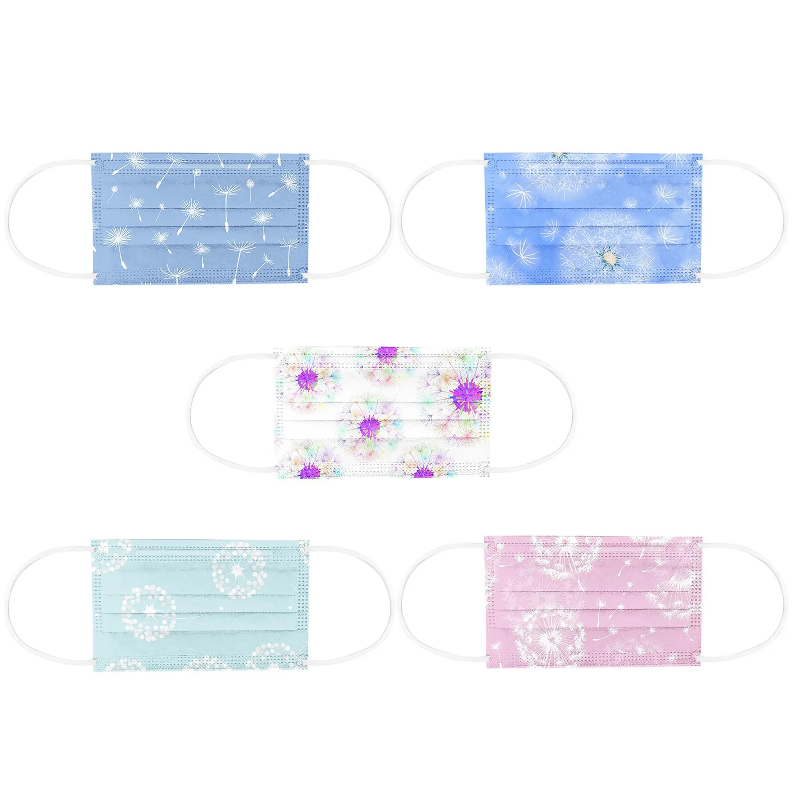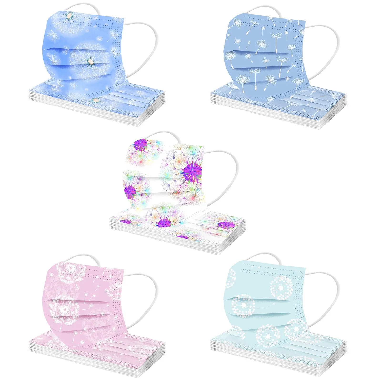 2021New одноразовые дыхательные аппараты для взрослых; Для защиты от загрязненного воздуха Защитная ткань грязи 3 слоя маска 1050 пакет, принт в виде одуванчиков, печать одноразовые маски
