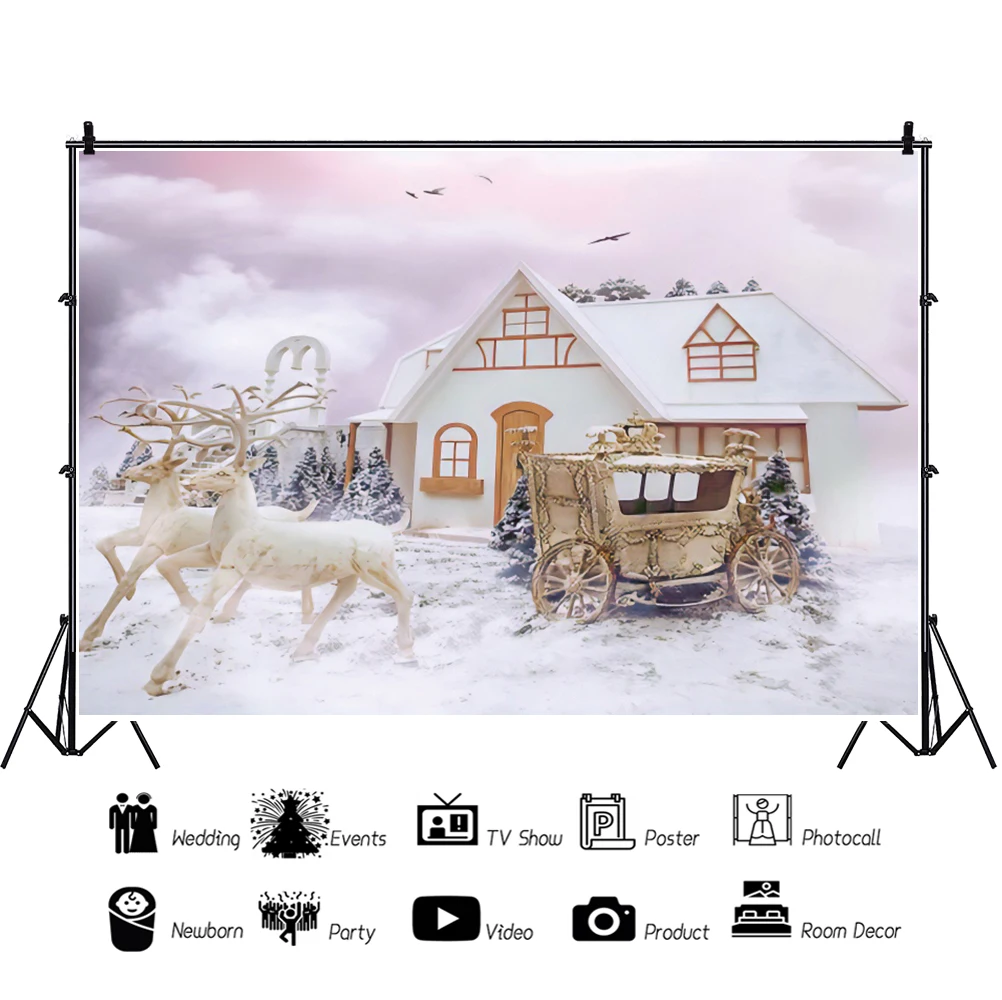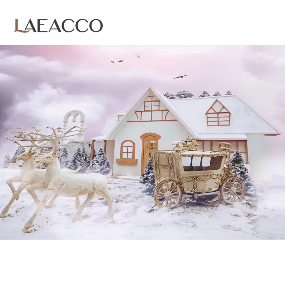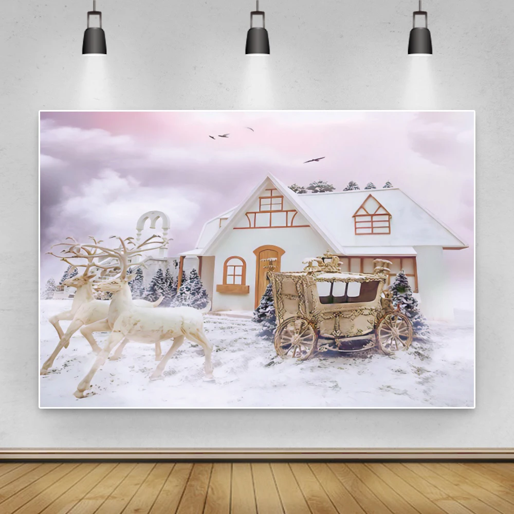 Laeacco мечтательные зимние рождественские праздники северный олень Санта Клаус сани снег сельская живописная фотография фон Фото фоны