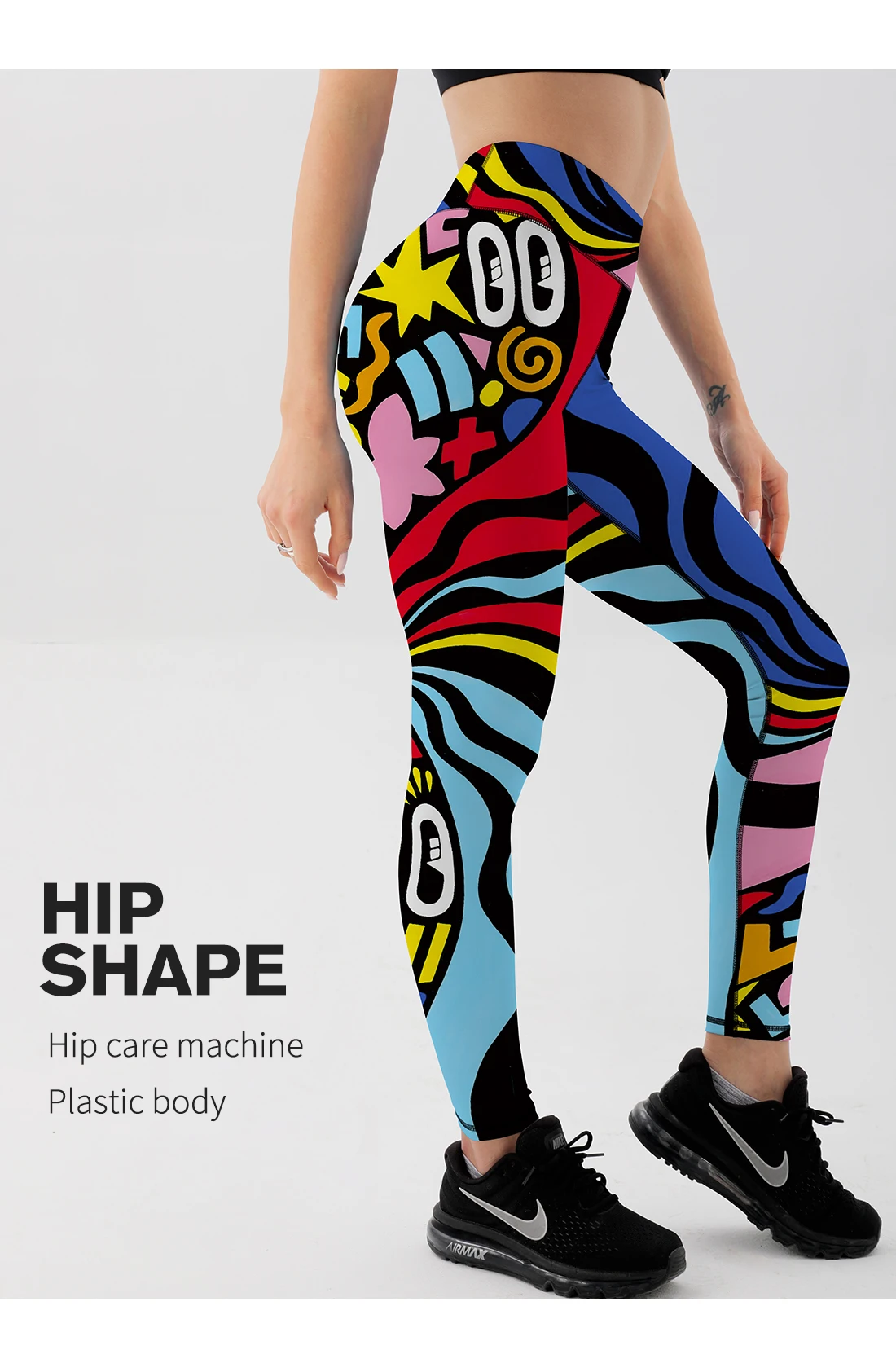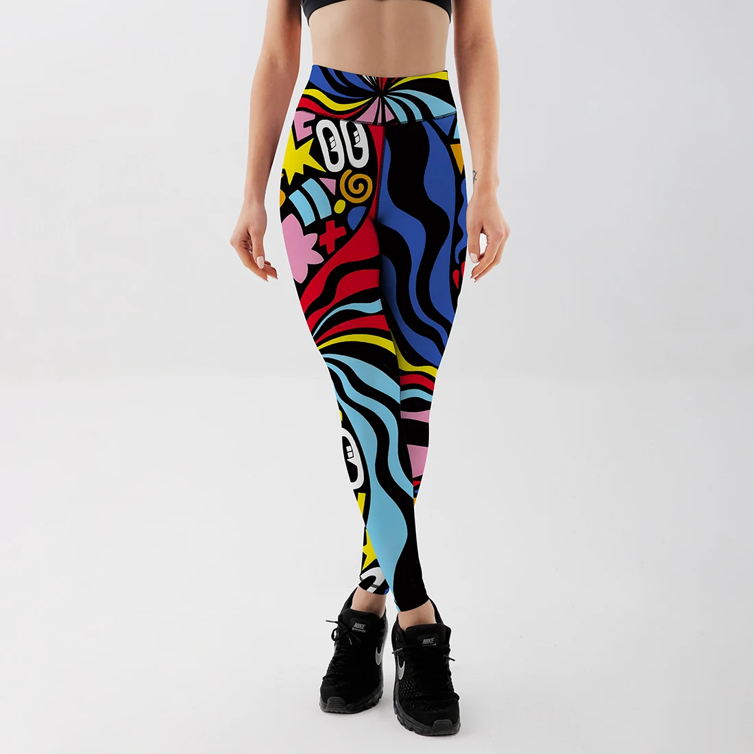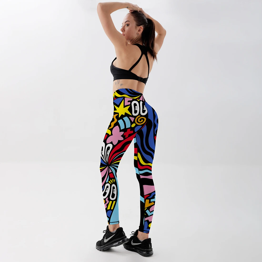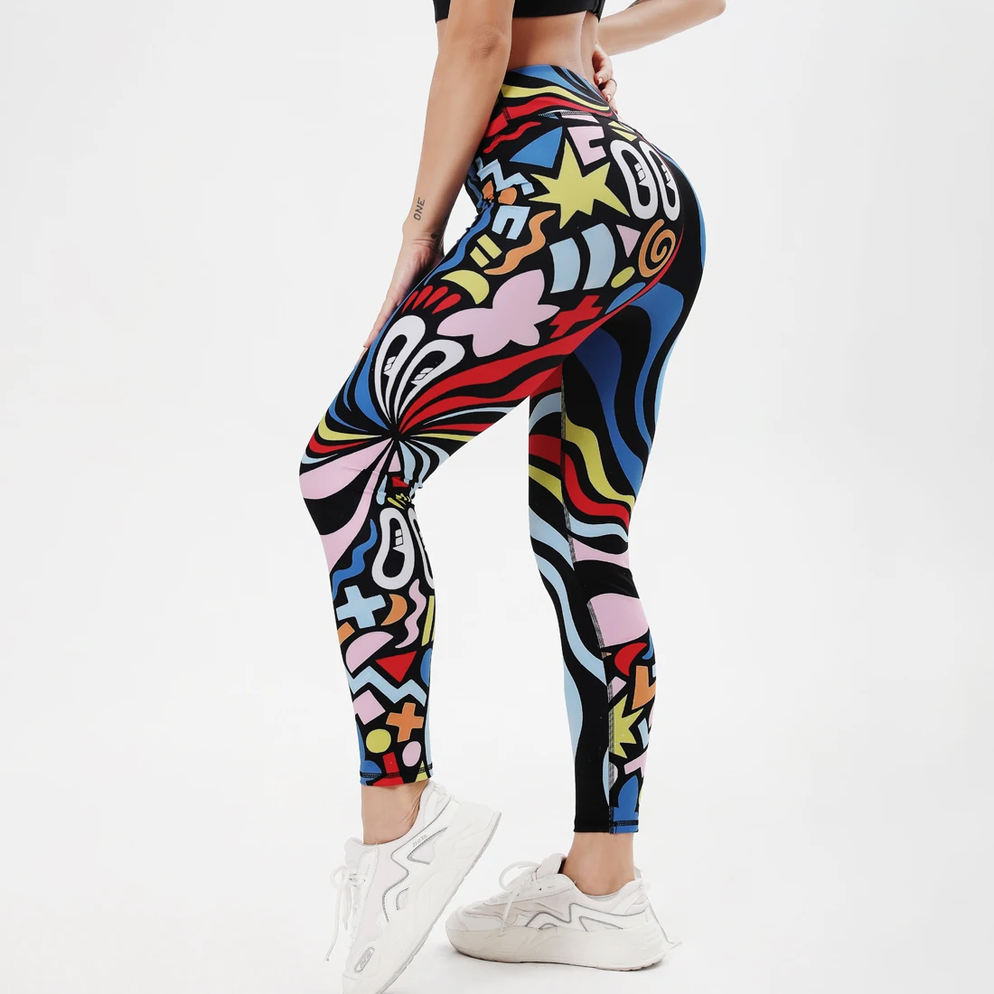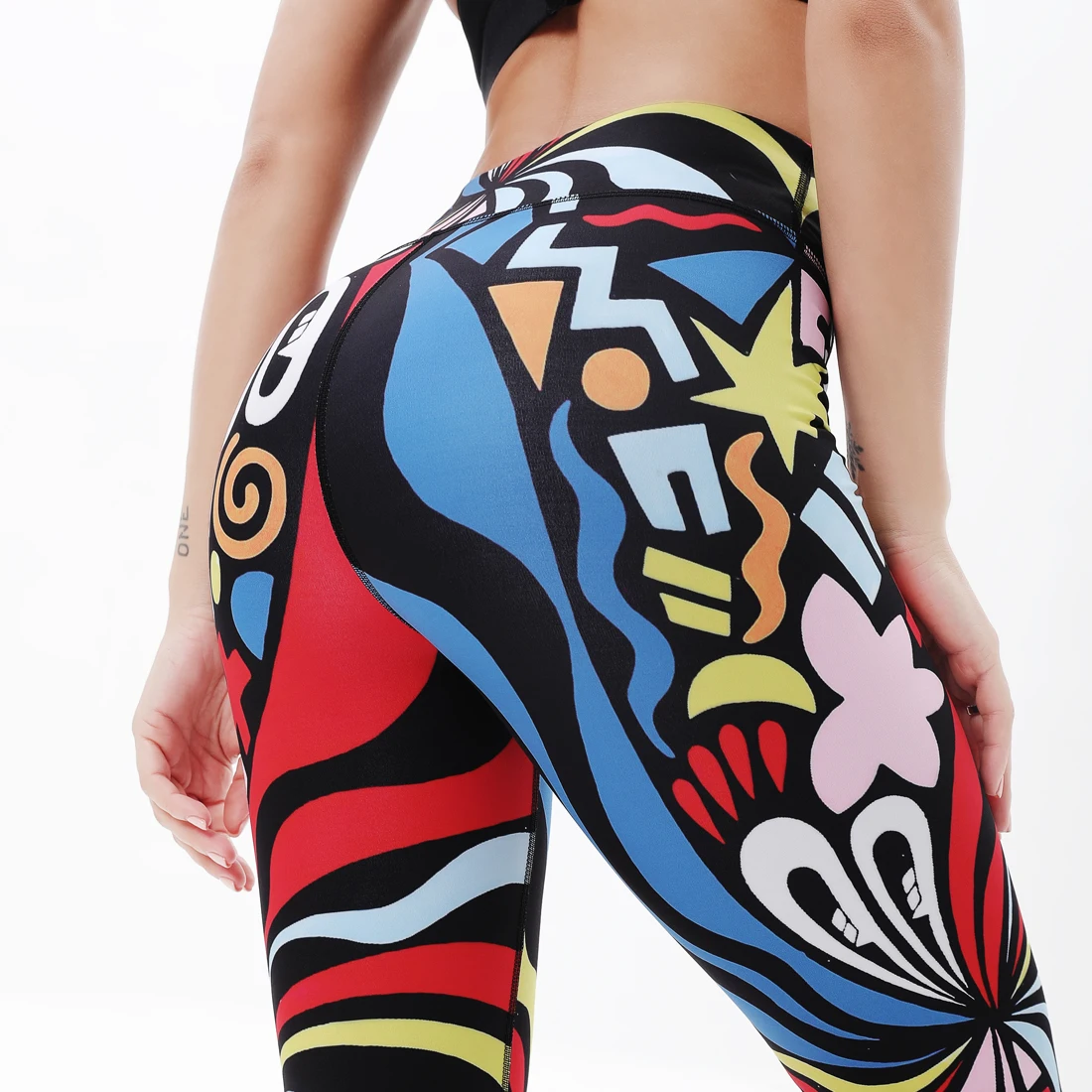 Женские леггинсы с ярким принтом, эластичные спортивные штаны с высокой талией для бега и фитнеса