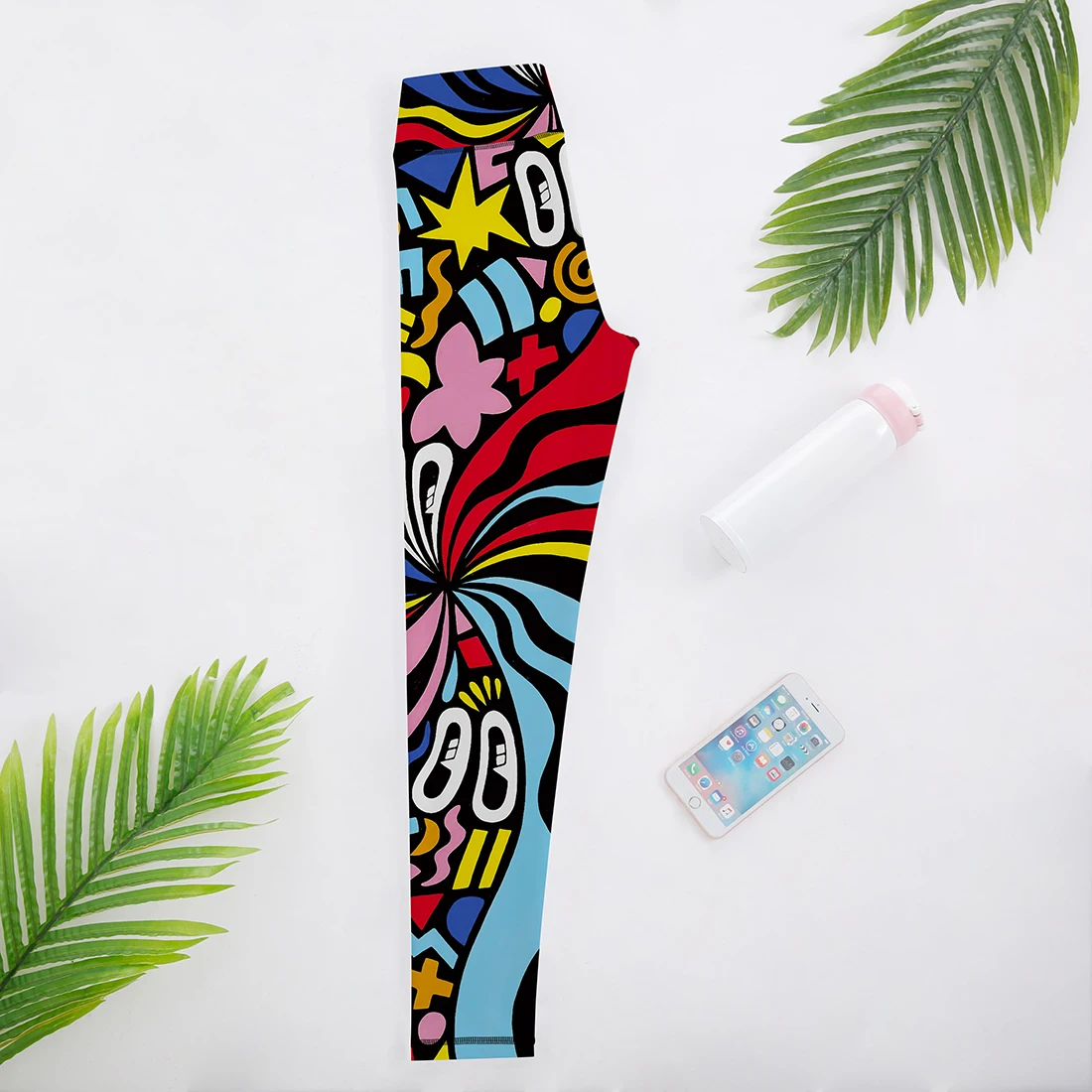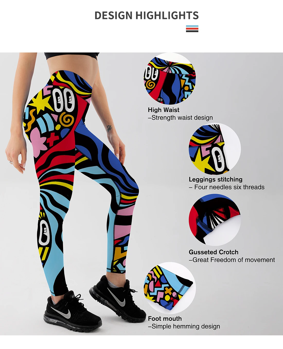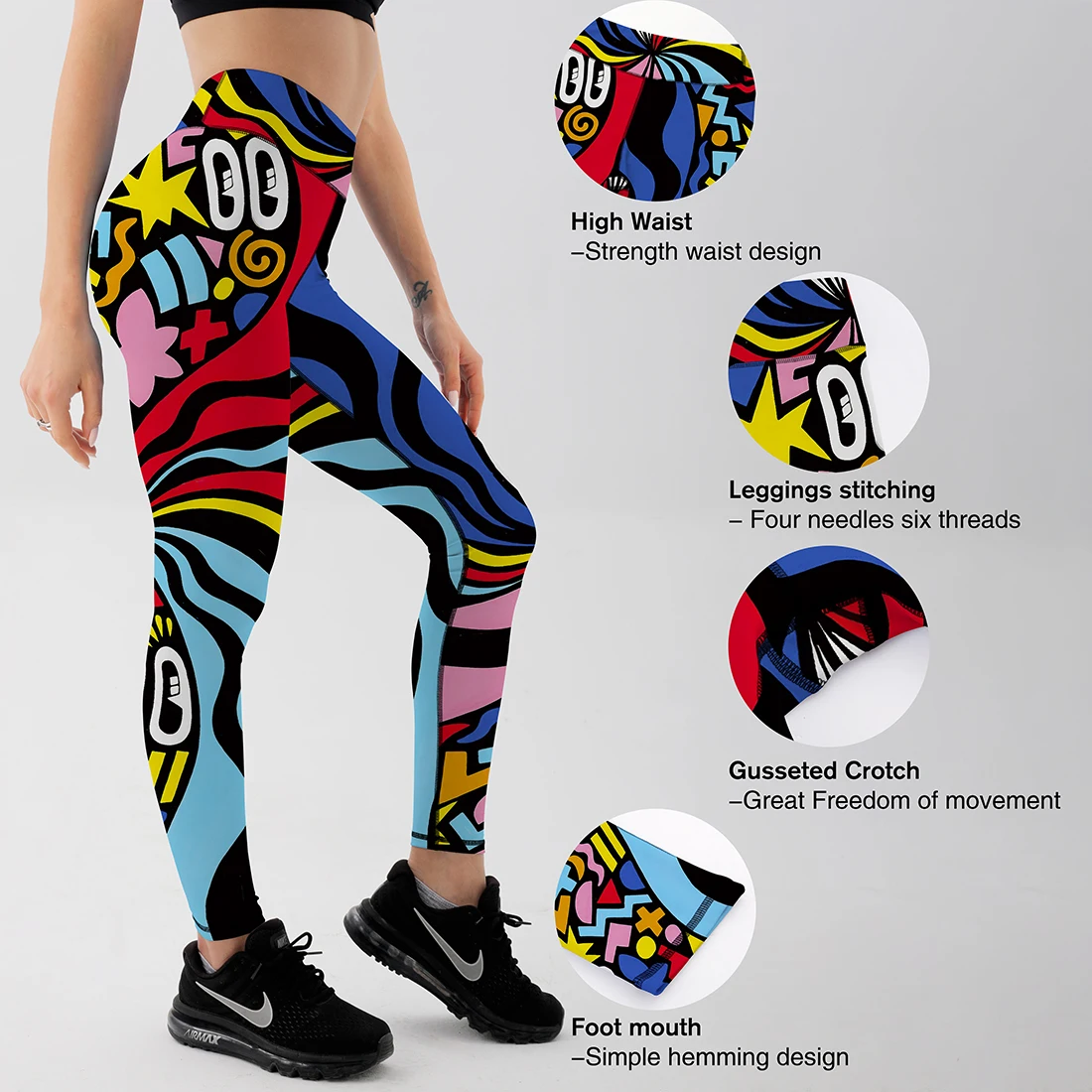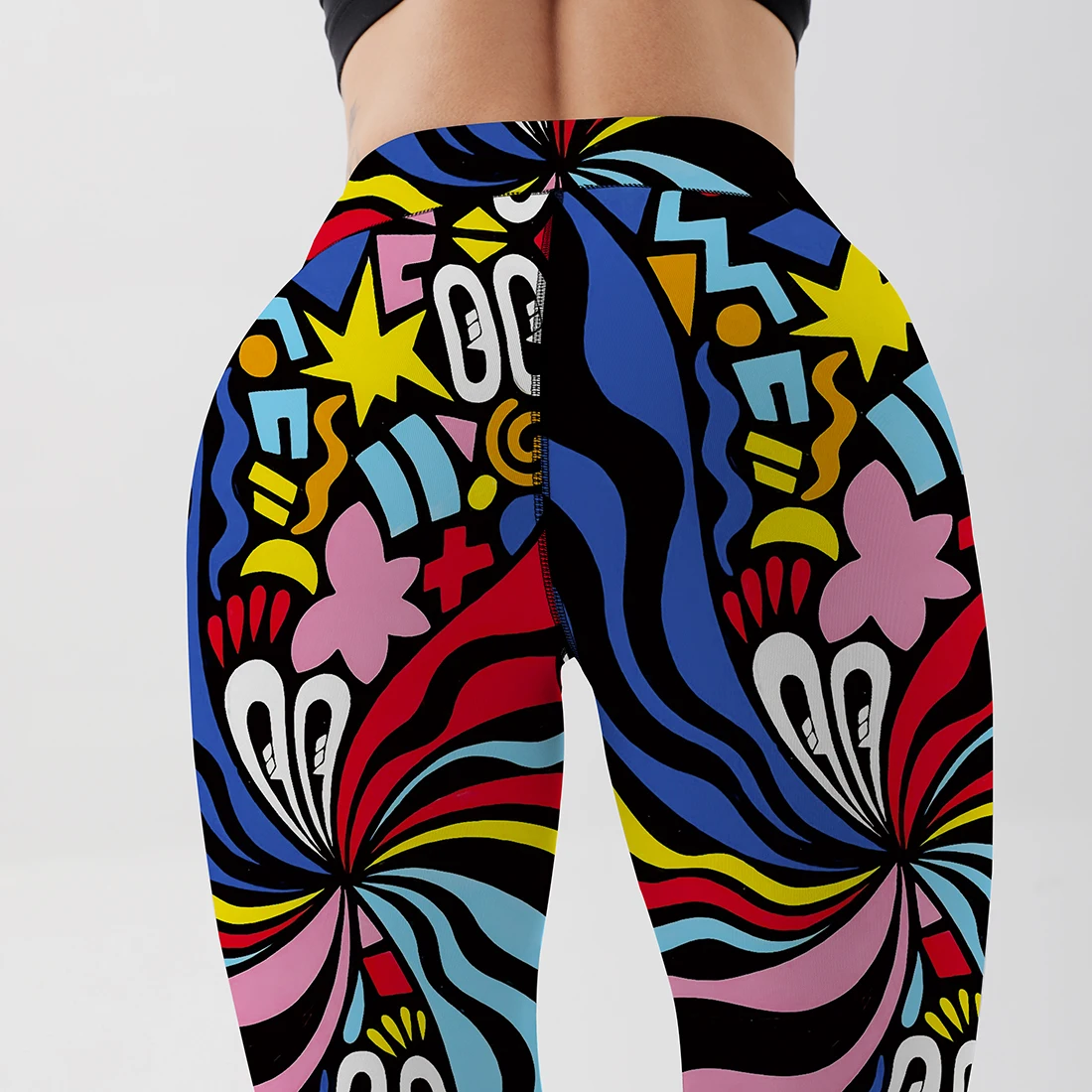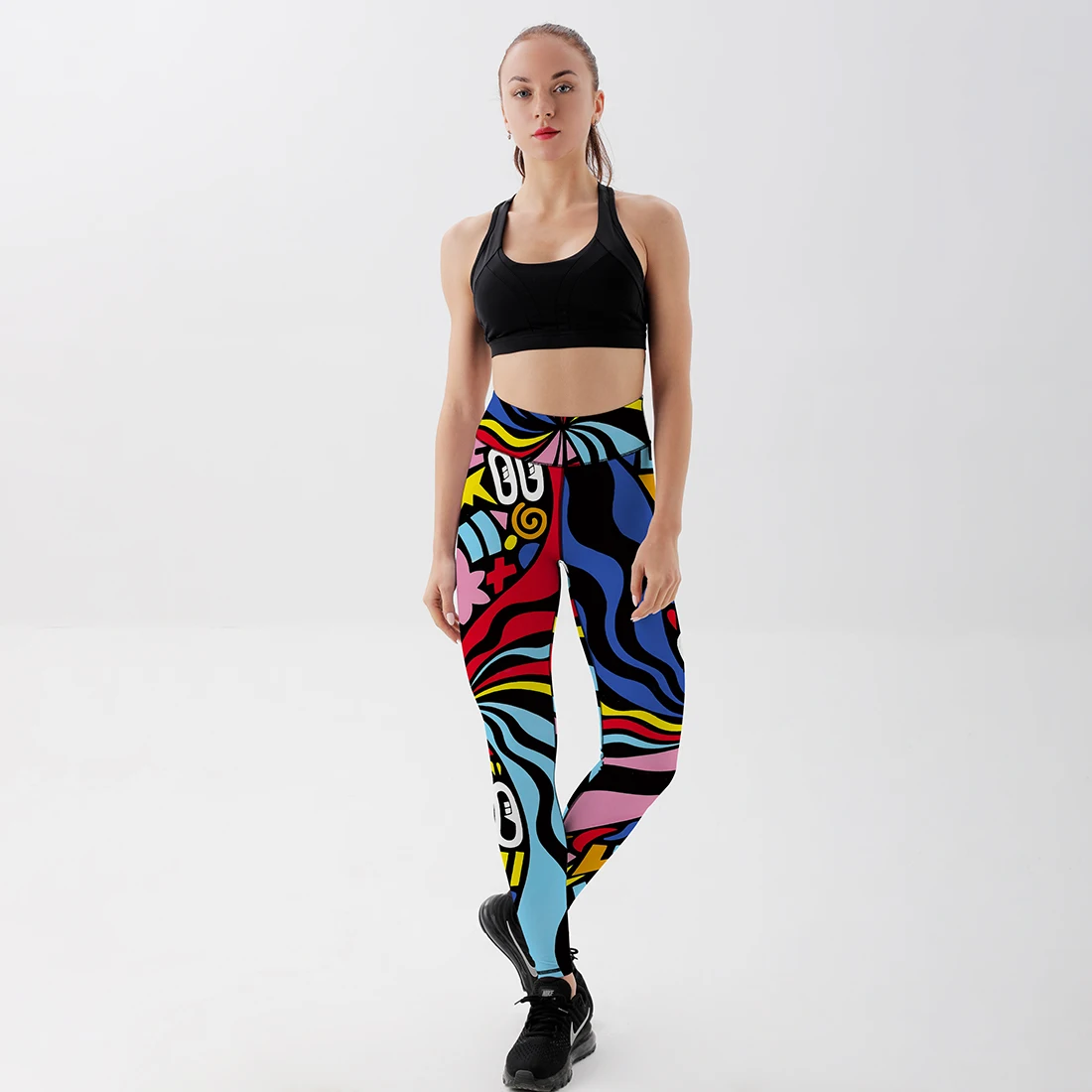 Женские леггинсы с ярким принтом, эластичные спортивные штаны с высокой талией для бега и фитнеса