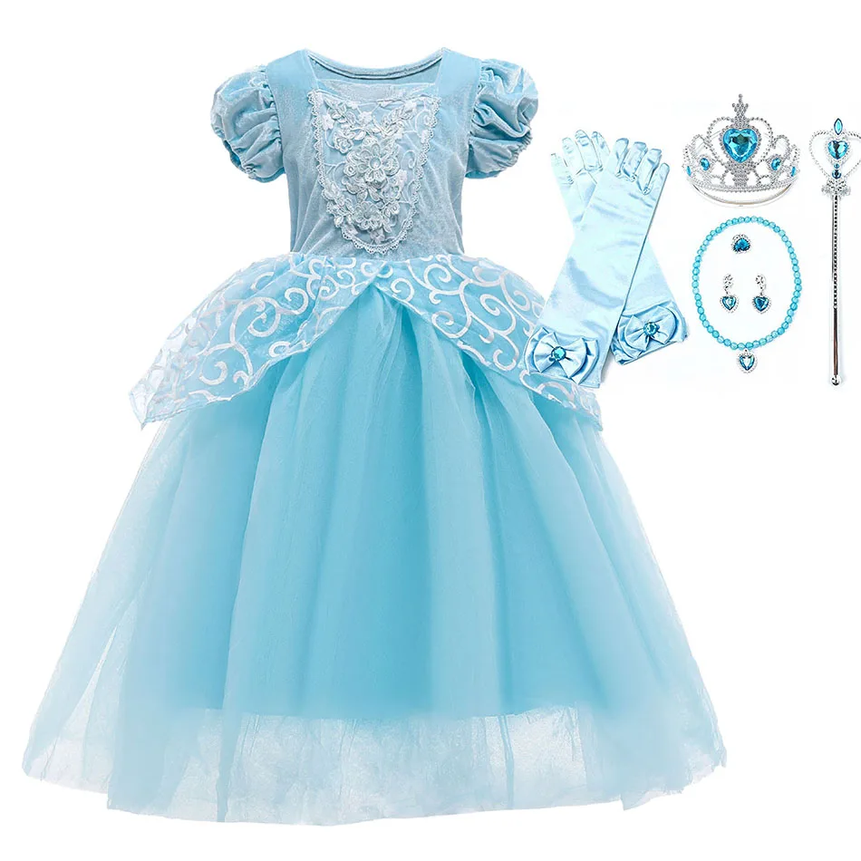 Костюм на Хэллоуин Золушка для девочек; Нарядное платье; Костюм с буфами на рукавах, многослойное праздничное платье принцессы на день рождения, вечерние платья аксессуары подарок