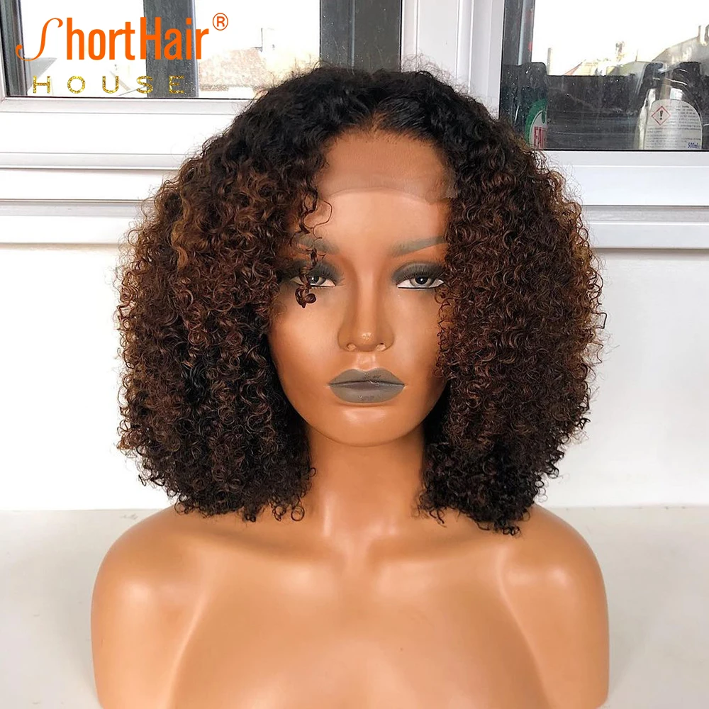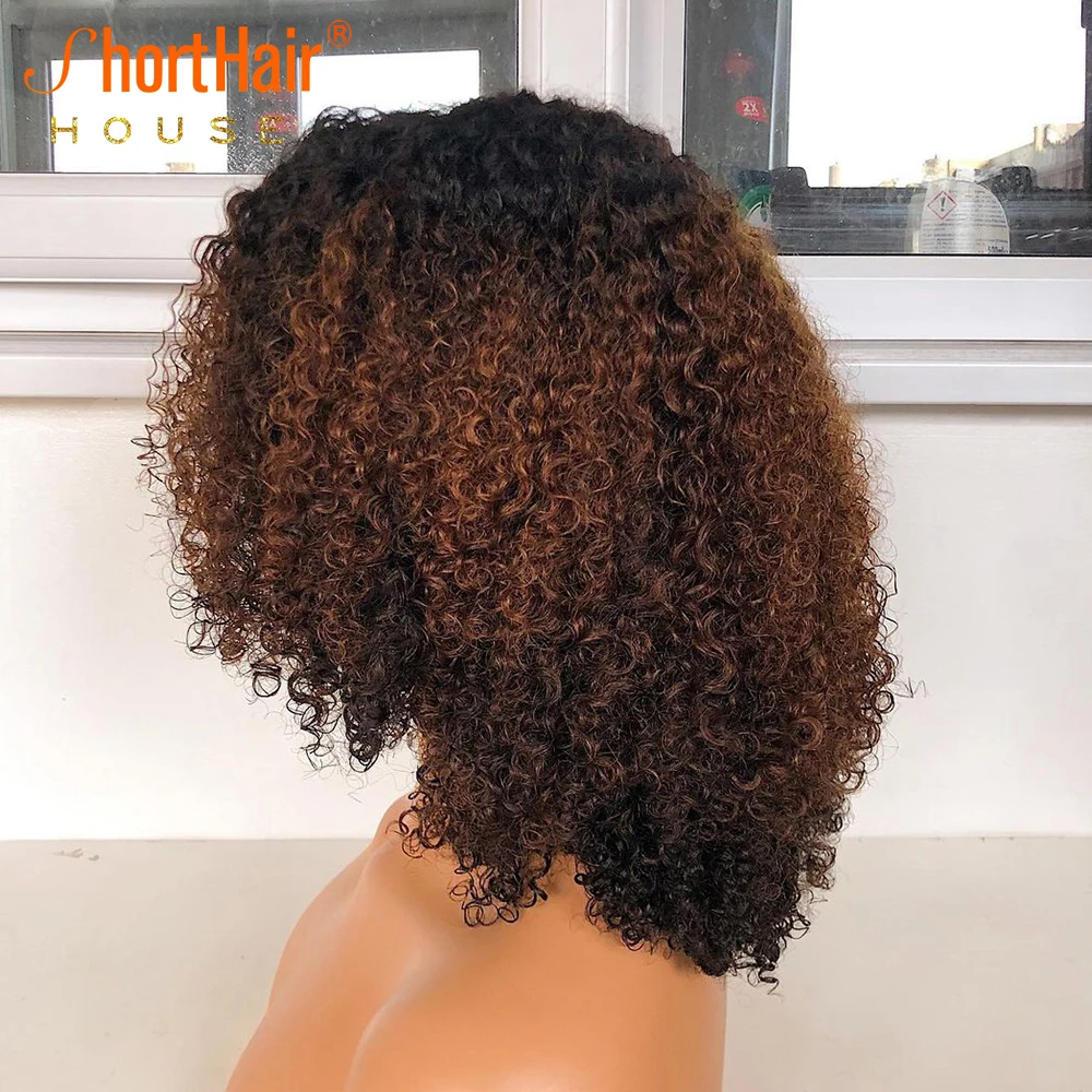 1b 30 эффектом деграде (переход от темного к монгольский 4x4 кружева закрытие парик глубоко вьющиеся синтетические волосы африканские Курчавые Кудрявые Парики Синтетические волосы на кружеве предварительно собранные человеческие волосы Цветной для черный Для женщин