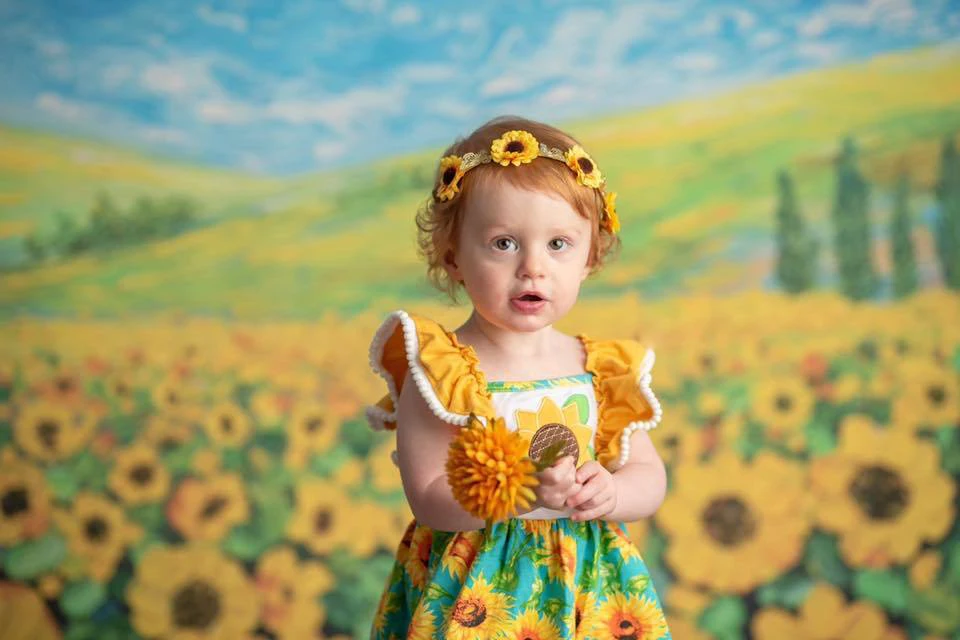 Подсолнечника фон для фотосъемки с изображением Платья с цветочным принтом для свадьбы, живопись небо фон для студийной фотосъемки новорожденного ребенка фон для фотосъемки в PhotocallSM-514