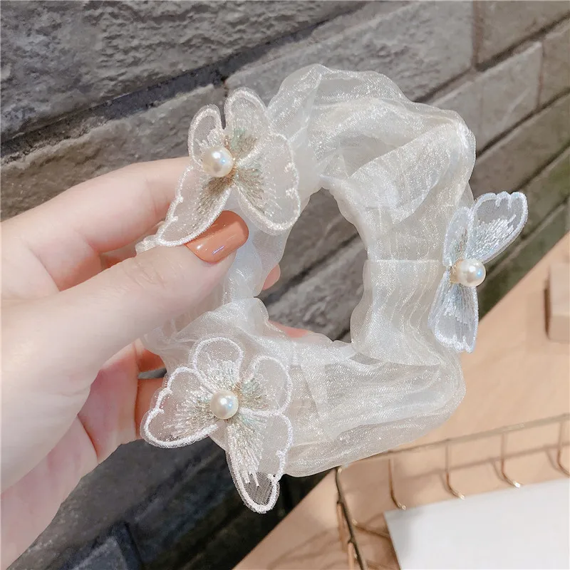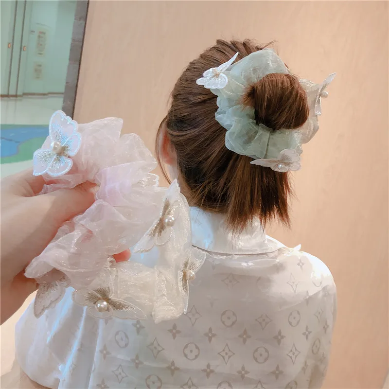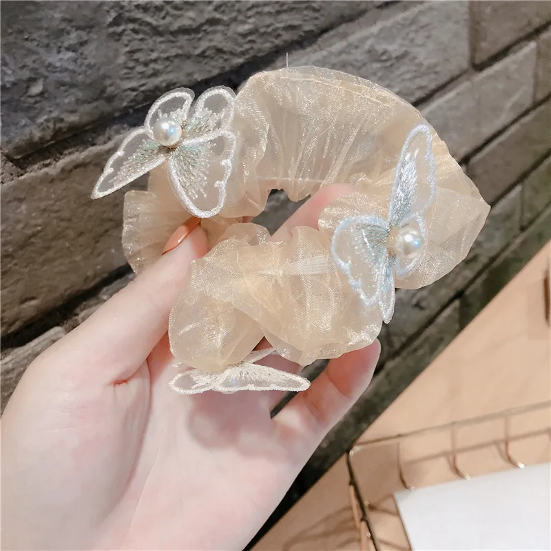 Резинки для волос с жемчужинами и бабочками для женщин, модные резинки для волос, заколка для конского хвоста, шифоновые резинки, набор аксессуаров для волос, резинки для волос