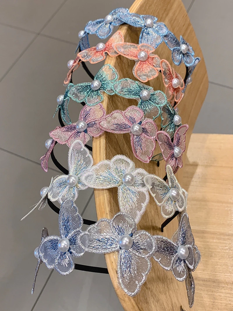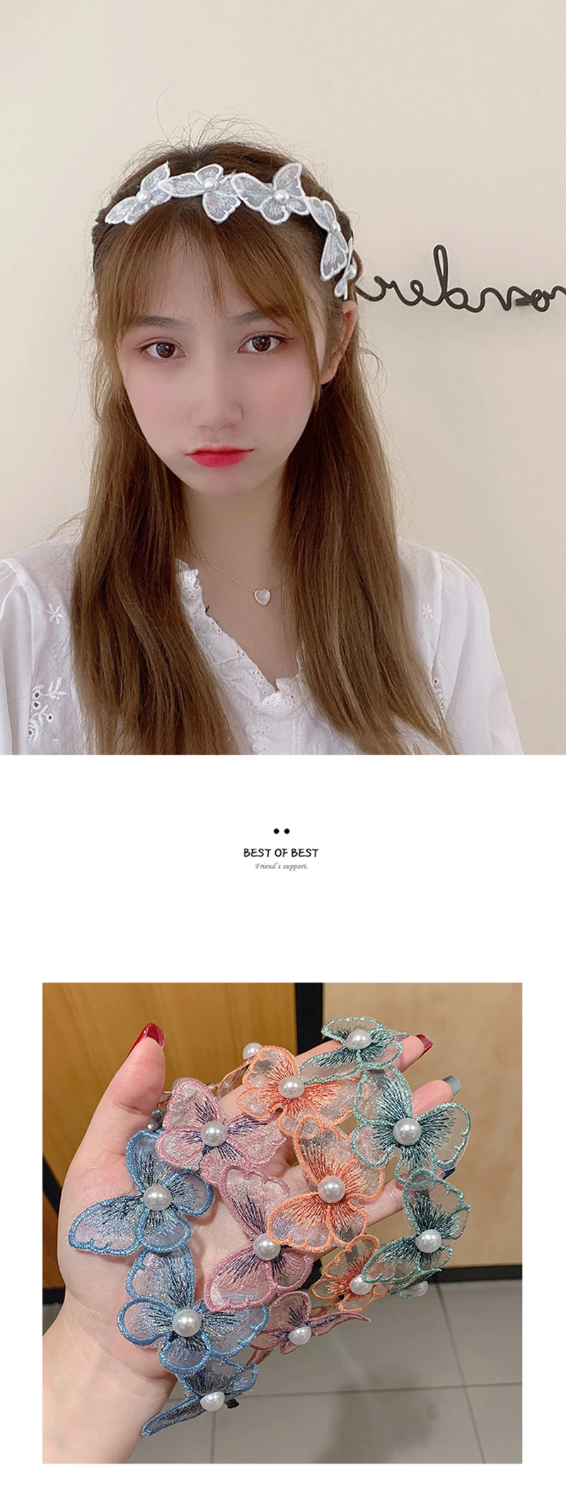 Ободок для волос Женский, кружевной, с бабочками, в Корейском стиле...