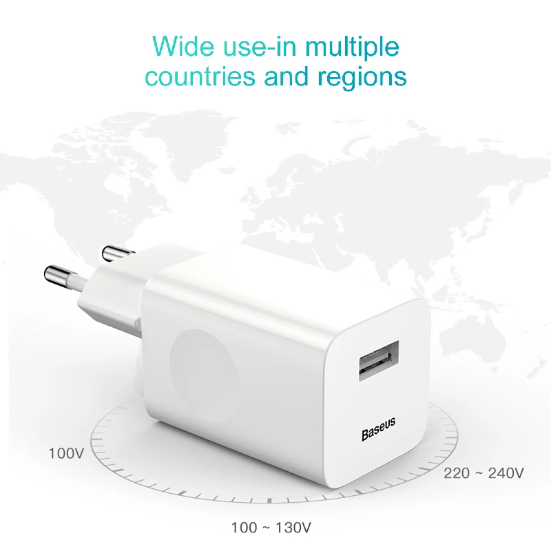 Product NameBaseus Single USB 24W Quick Charge Charger EU/ US Plug