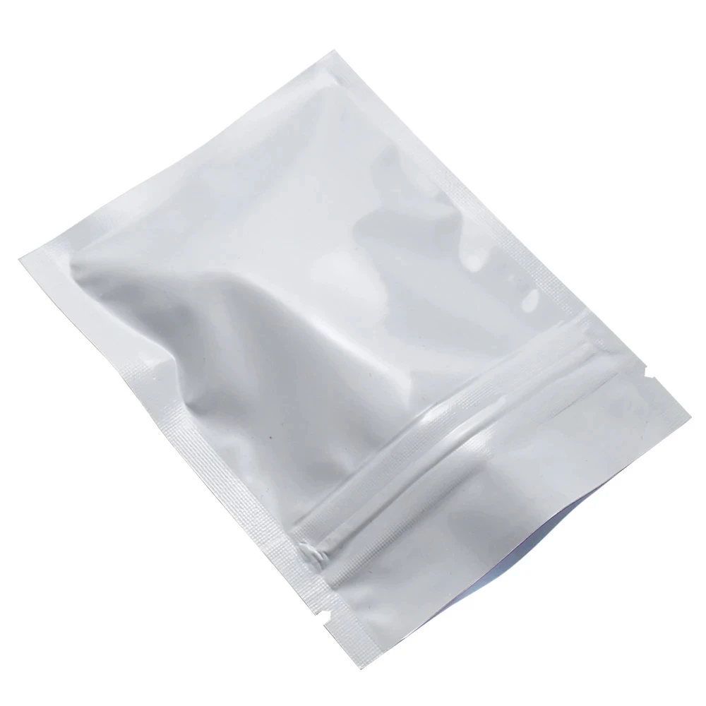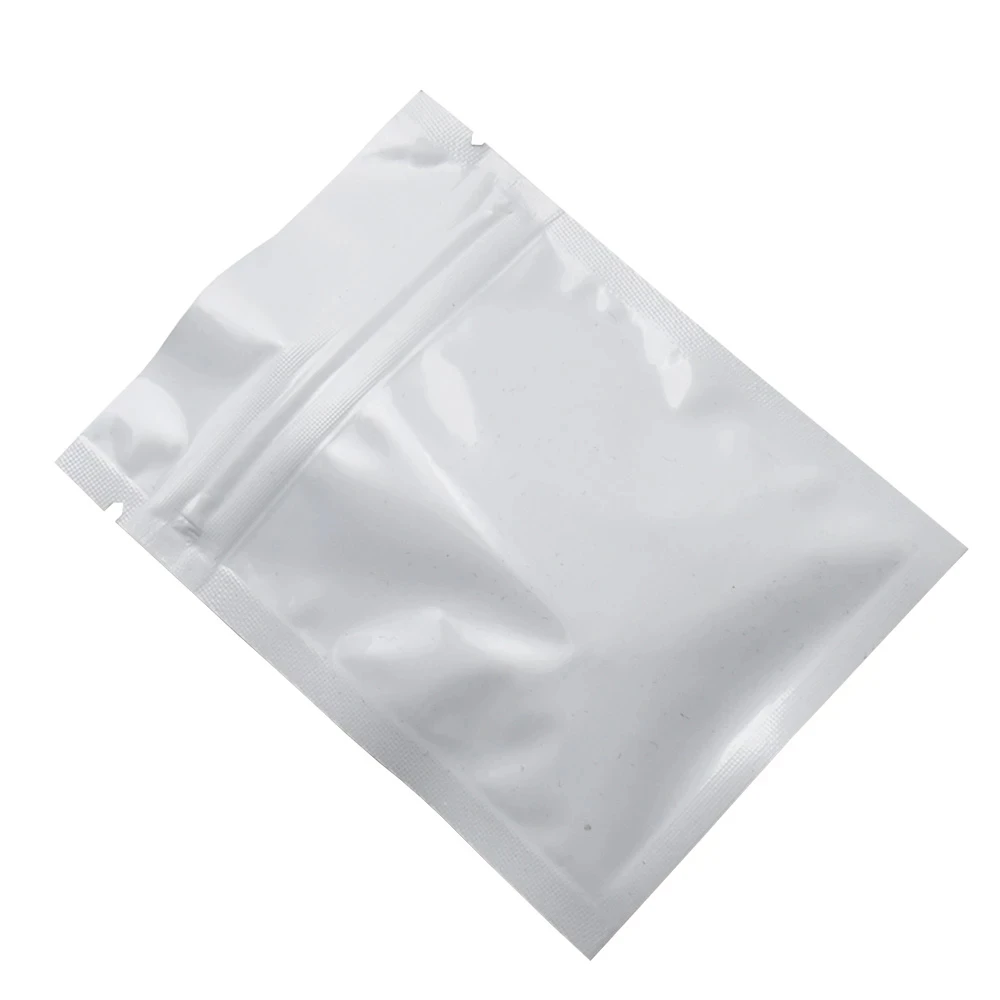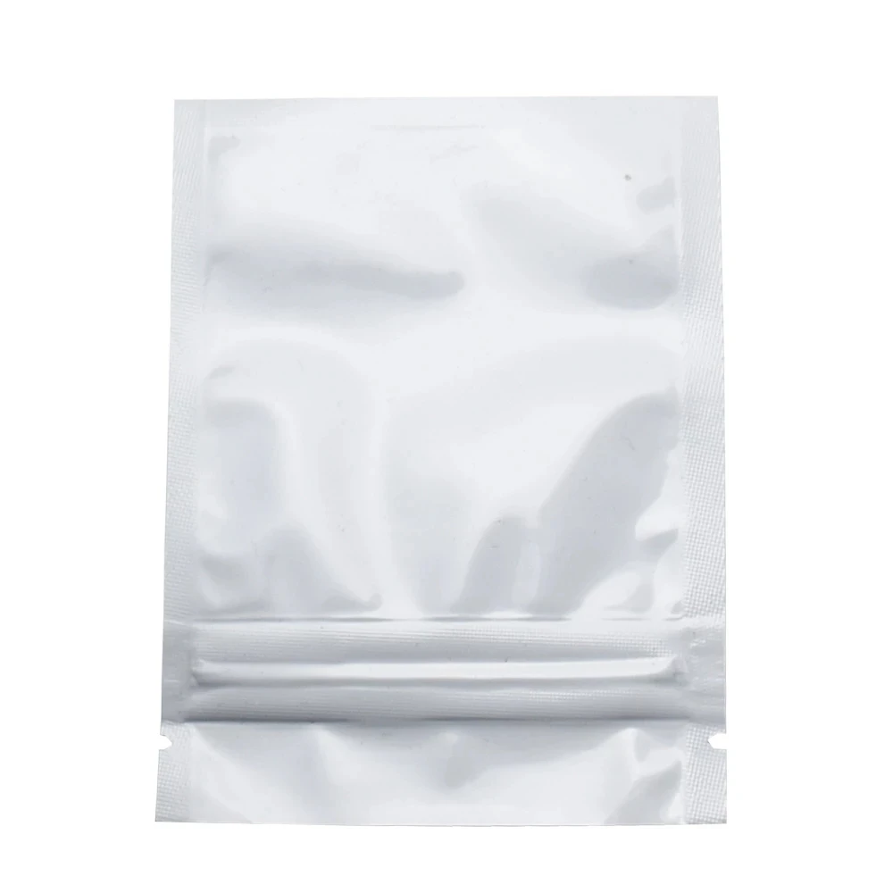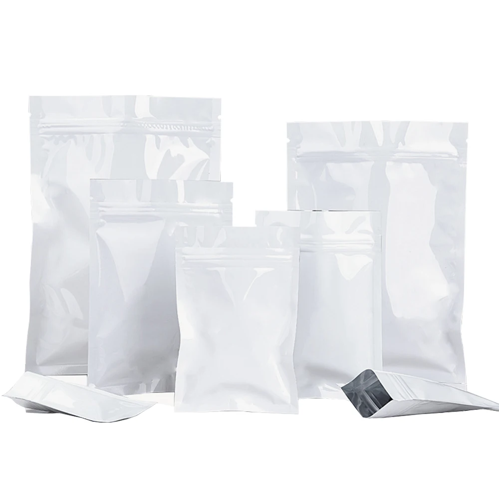 100 шт. глянцевые белые пакеты из алюминиевой фольги с застежкой-молнией, самозахватывающиеся пакеты с уплотнением, пакеты для хранения еды, шоколада, сухофруктов, орехов