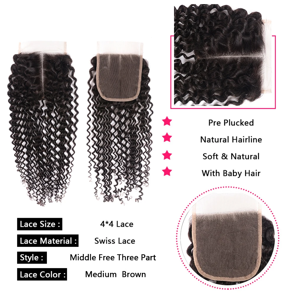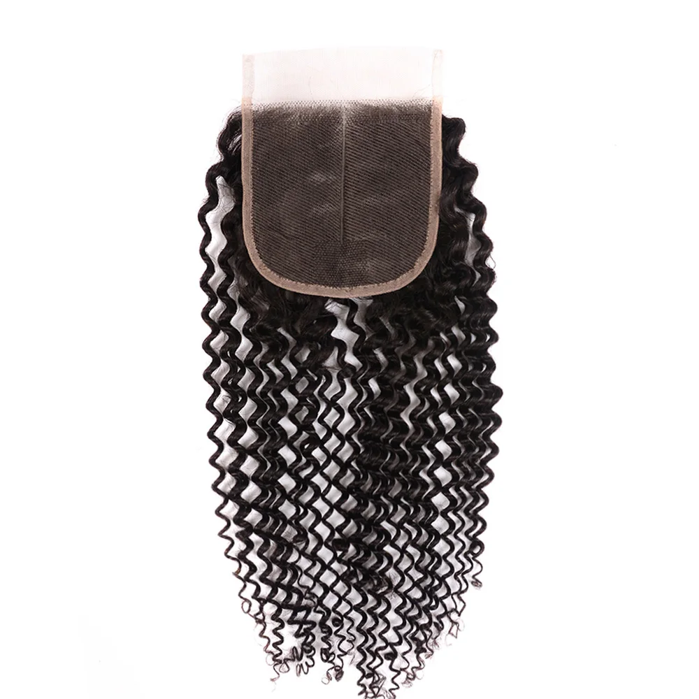 Кудрявые человеческие волосы 4x4, кружевная застежка для черных женщин, бразильские волосы без повреждения кутикулы, средняя часть, натуральный цвет, 14 дюймов кружевная застежка