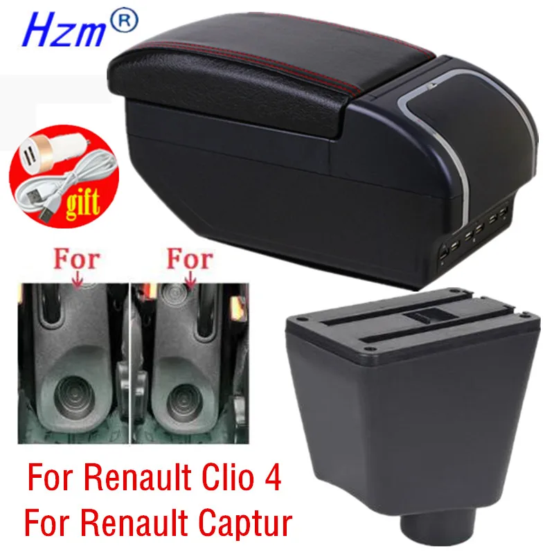 Подлокотник для автомобиля, для Renault Clio Captur, вращающийся на из искусственной кожи градусов, с пепельницей, подстаканником, USB-интерфейсом