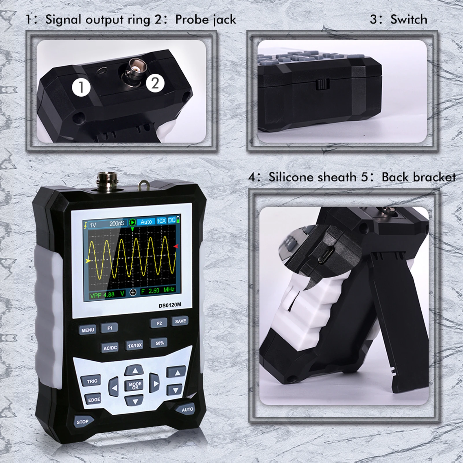 Цифровой осциллограф DS0120M, 120 МГц, полоса пропускания 2,4 Мвыб.сек, частота дискретизации HD 320 дюйма TFT 240 x с функцией хранения сигналов с подсветкой