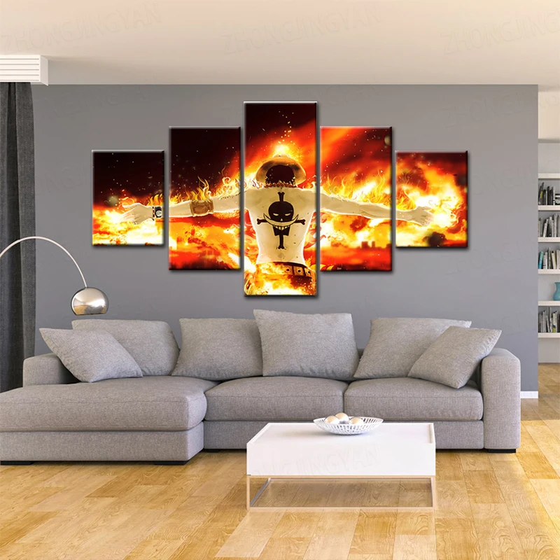 Картина на холсте, настенные художественные принты, модульные 5 панелей, аниме Portgas D. Цельный плакат Ace, домашний декор для гостиной