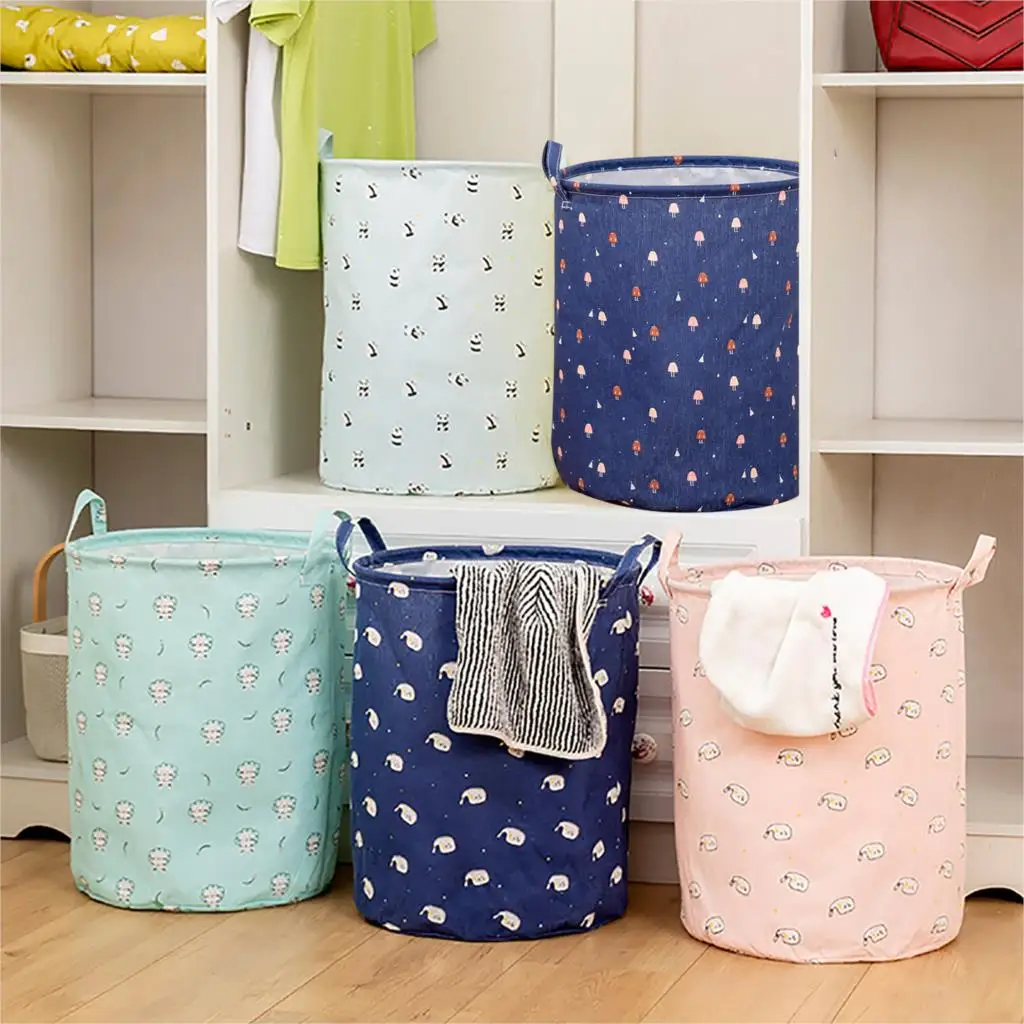 Большой размер хранения: высота 43 см, диаметр 32 см, большая емкость для хранения отлично подходит для хранения игрушек, одежды и т. д., 2 ручки для удобной переноски, это станет идеальным органайзером для вашей повседневной жизни.