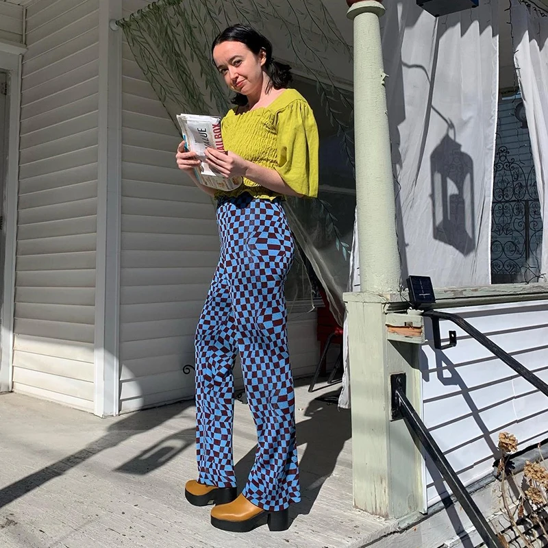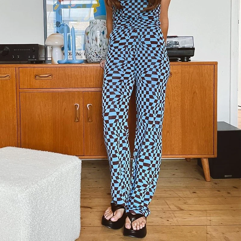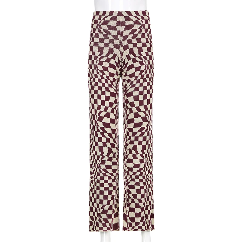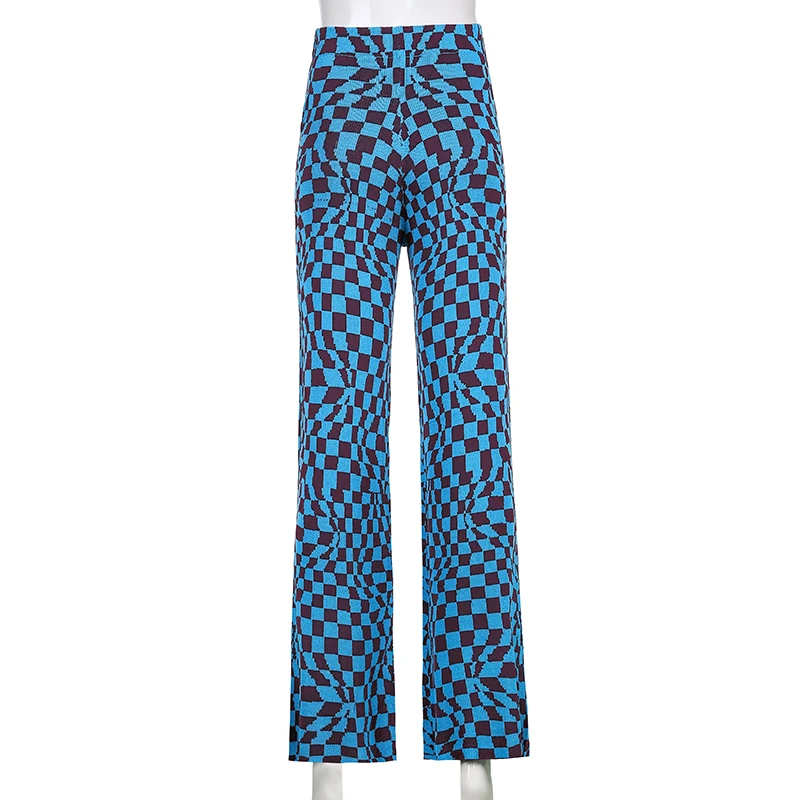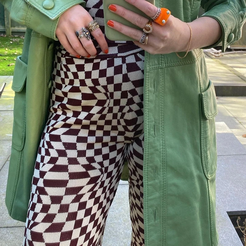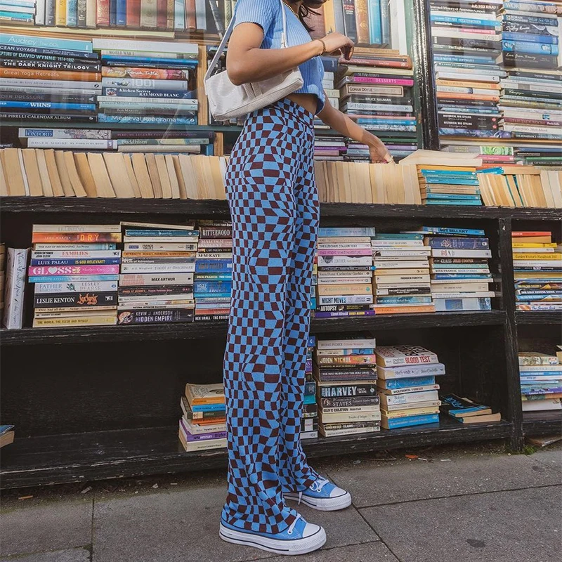 Повседневные винтажные брюки в клетку, женские длинные брюки с высокой талией 2021 для женщин, уличная одежда в стиле ретро с рисунком ромбиками
