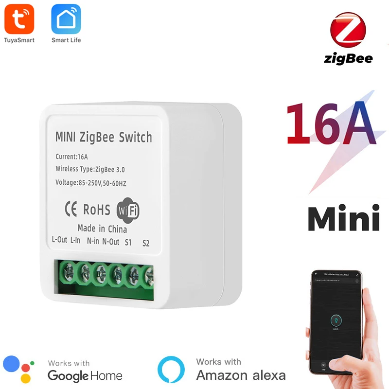 Умный мини-выключатель Zigbee, 16 А, поддерживает 2-стороннее управ...
