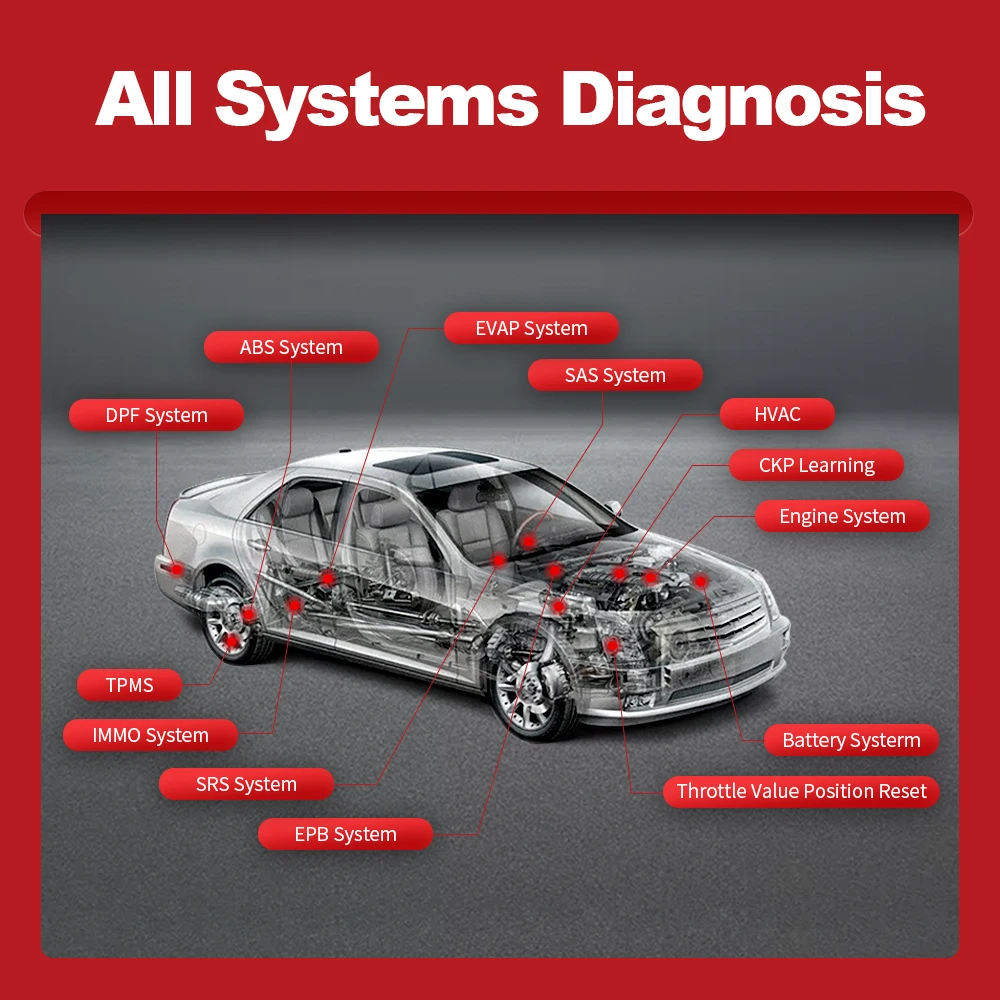 "С превосходными диагностиками всех систем, этот универсальный obd2 сканер может быть использован для чтения всех доступных систем ЭБУ информации, чтобы облегчить диагностику транспортного средства. Полные системы отличаются от различных автомобилей, и они обычно включают двигатель, трансмиссию, ABS, SRS, SAS, TPMS, EPB и шасси/корпус/электрическое оборудование и т. Д.* Проверьте свой автомобиль, как профессиональный механический техник* Прочитайте DTCs из всех электронных систем управления транспортного средства, чтобы найти проблемные зоны и предложить решения;* Легко Стирайте коды после получения DTCs и проведения определенного ремонта и выключите индикатор неисправности;* Реальные данные показывают каждый элемент параметра sendor, отображаемый в аналоговом, текстовом, волноводном графическом режимах и т. д.;* Активный тест, используемый для доступа к подсистеме для конкретных транспортных средств и компонентным испытаниям."