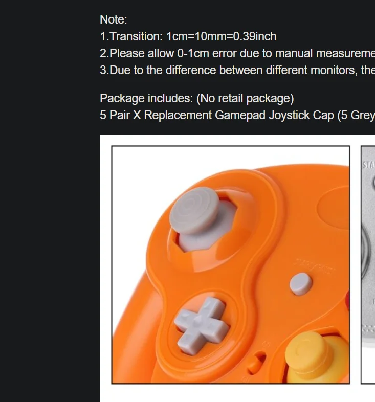 На почте продавец говорит, что колпачки jostick на 100% высокого качества, что неверно, они намного меньше, чем оригинальные, материал Жесткий пластик, оригинал-мягкая резина, это неверно, что они продают его с этим описанием, когда на самом деле продукт сделан с ужасно Качество