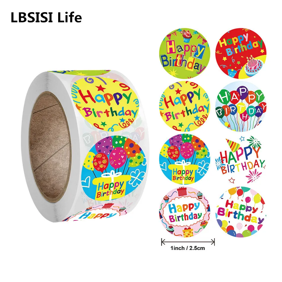LBSISI Life 1 дюйм 500 шт. рулон с днем рождения с четырьмя прекрасными цветными рисунками для коробок конвертов сумок декоративных наклеек этикеток
