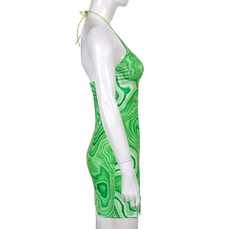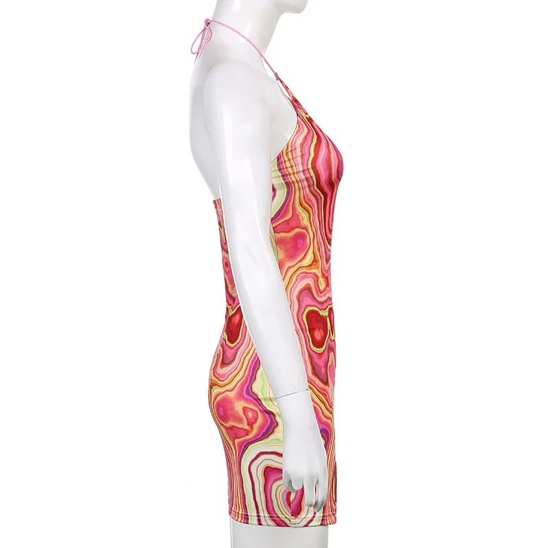 Женское мини-платье с принтом пейсли, открытой спиной