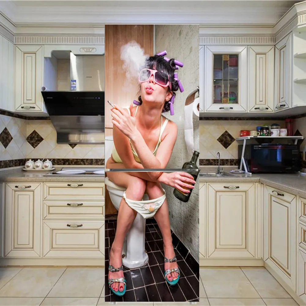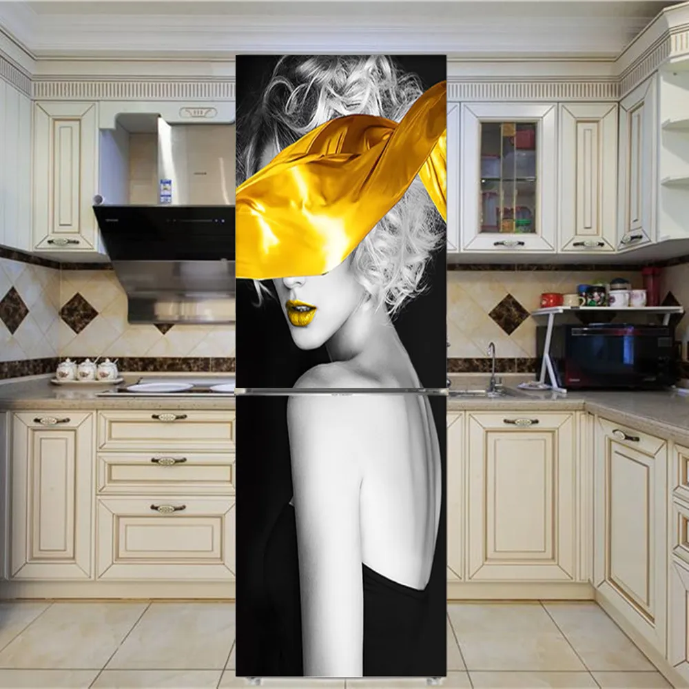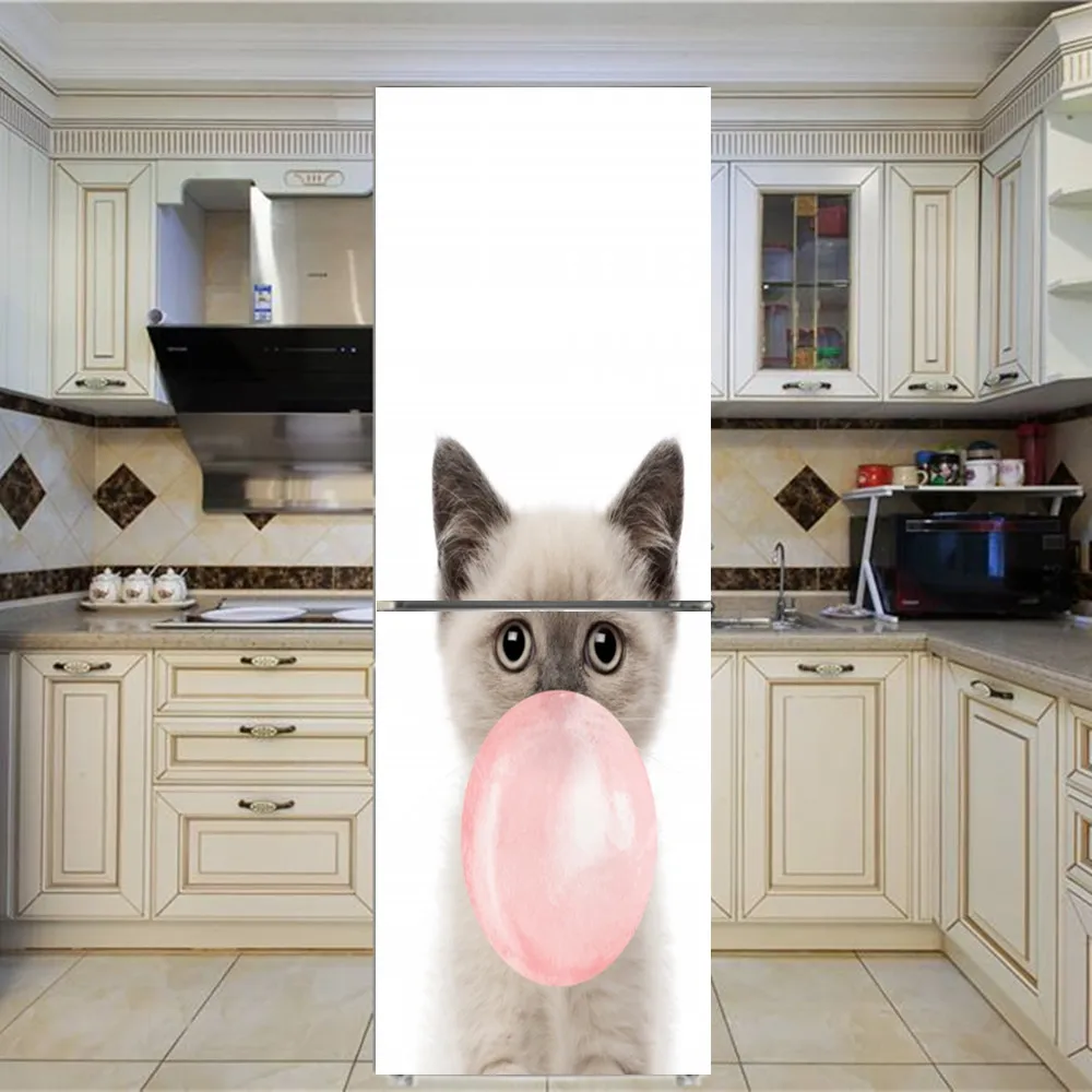Женская самоклеящаяся виниловая наклейка на дверь холодильника с изображением животных, мороженого, большая настенная Крышка для холодильника, кухонная мебель, украшение