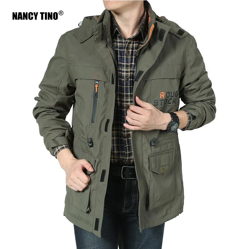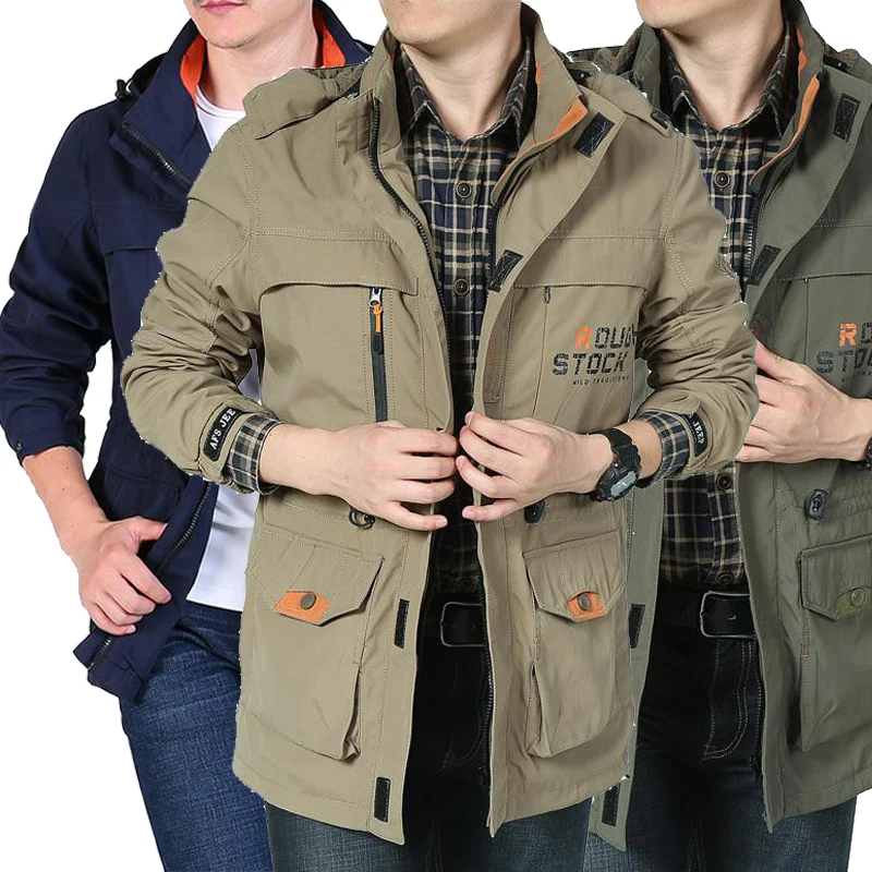 Куртка мужская для пешего туризма, Повседневная ветровка средней длины, с застежкой на липучке, для улицы, для рыбалки, облегающее пальто, весна