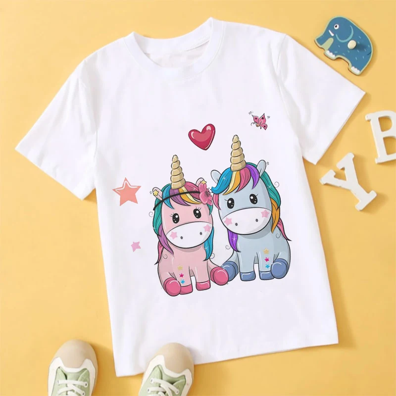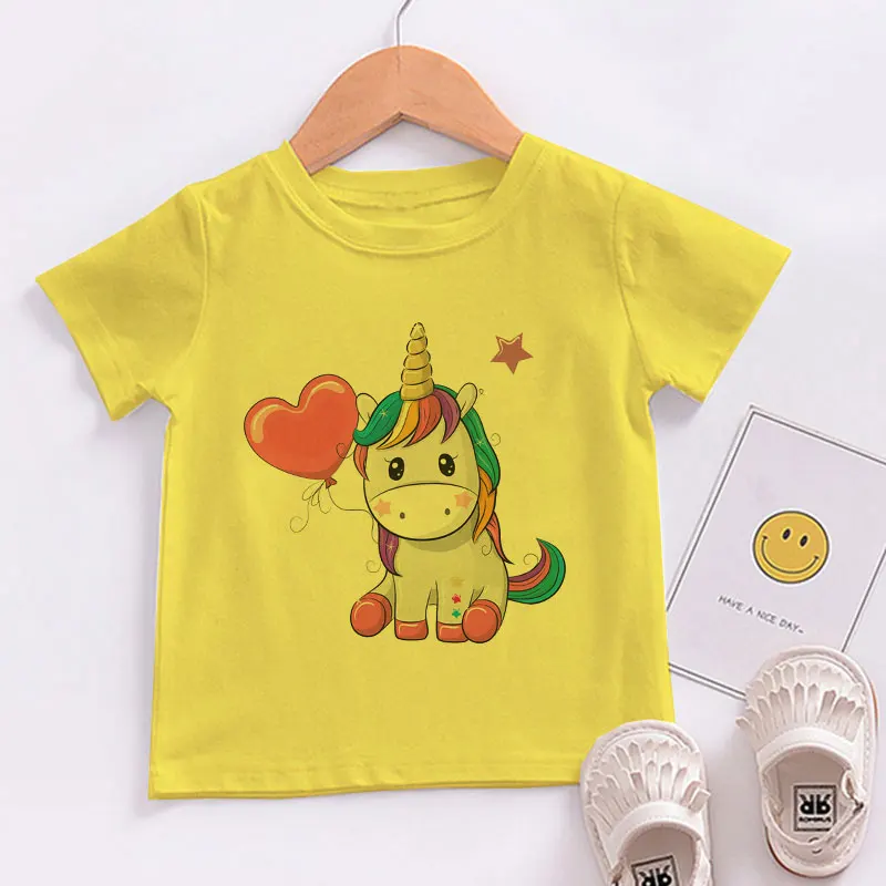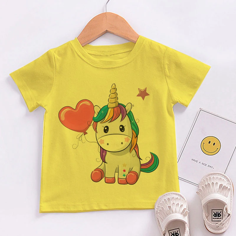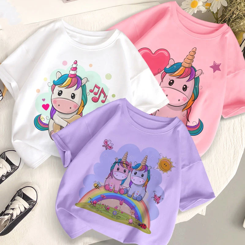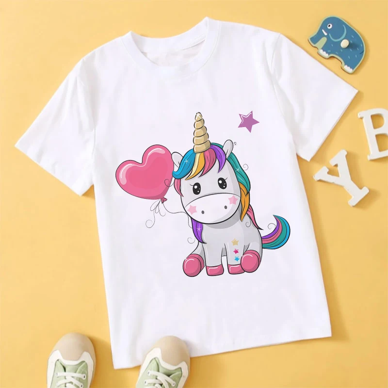 Футболка для мальчиков и девочек 2-9 лет, милый летний топ с коротким рукавом и принтом единорога, повседневная одежда для малышей и подростков, 2022