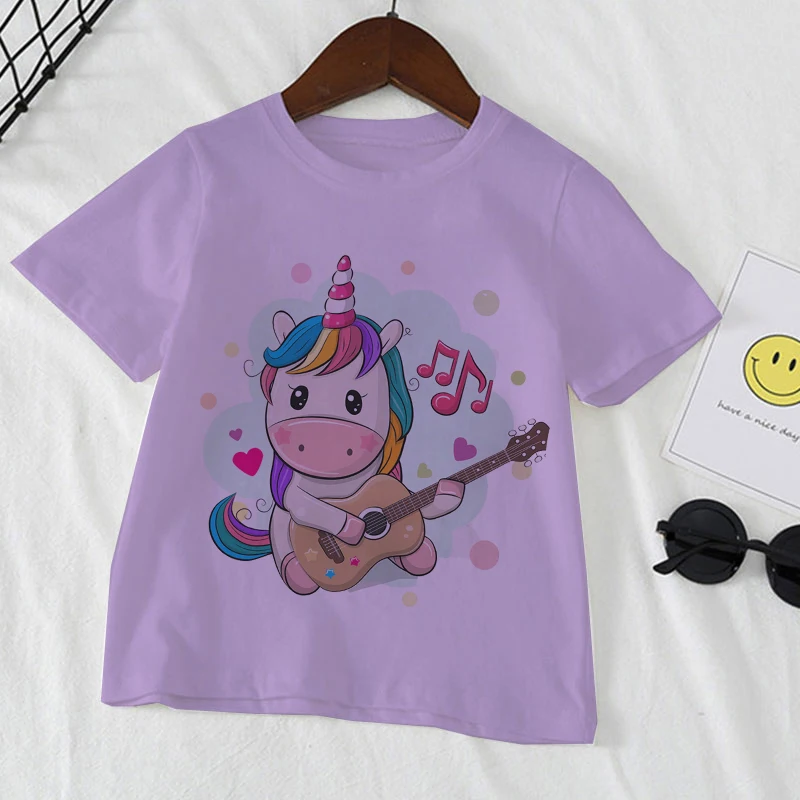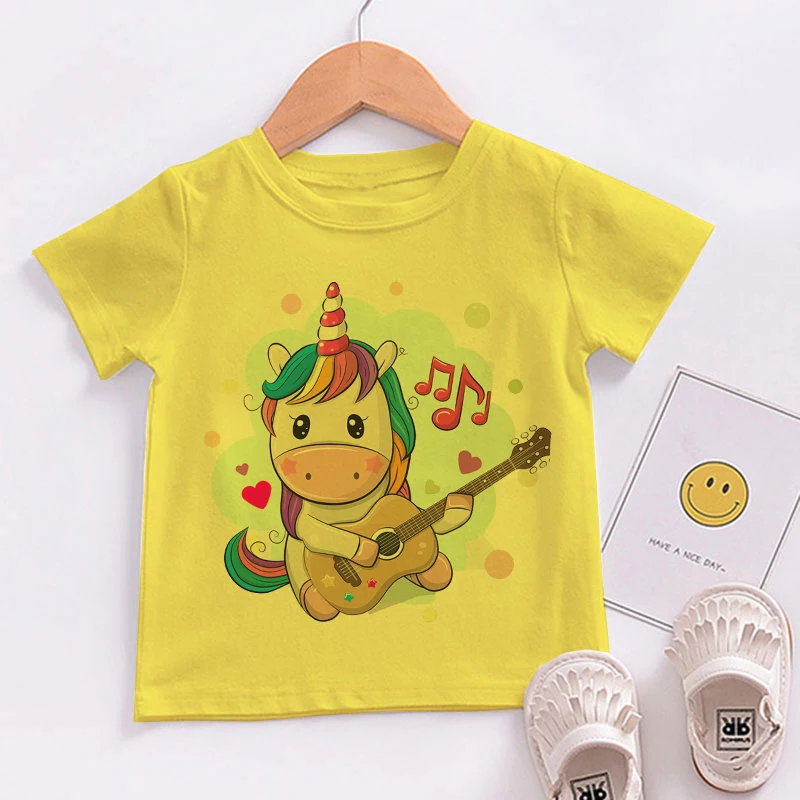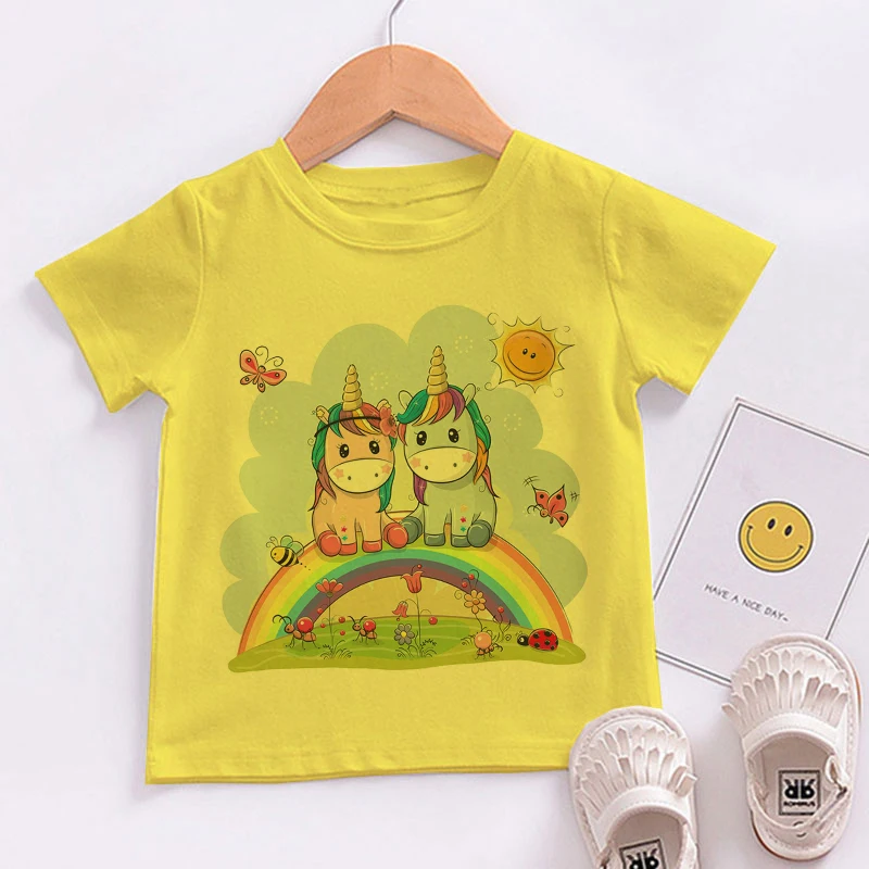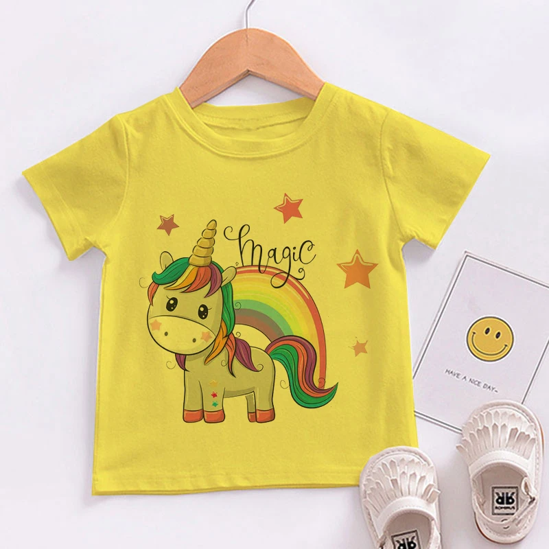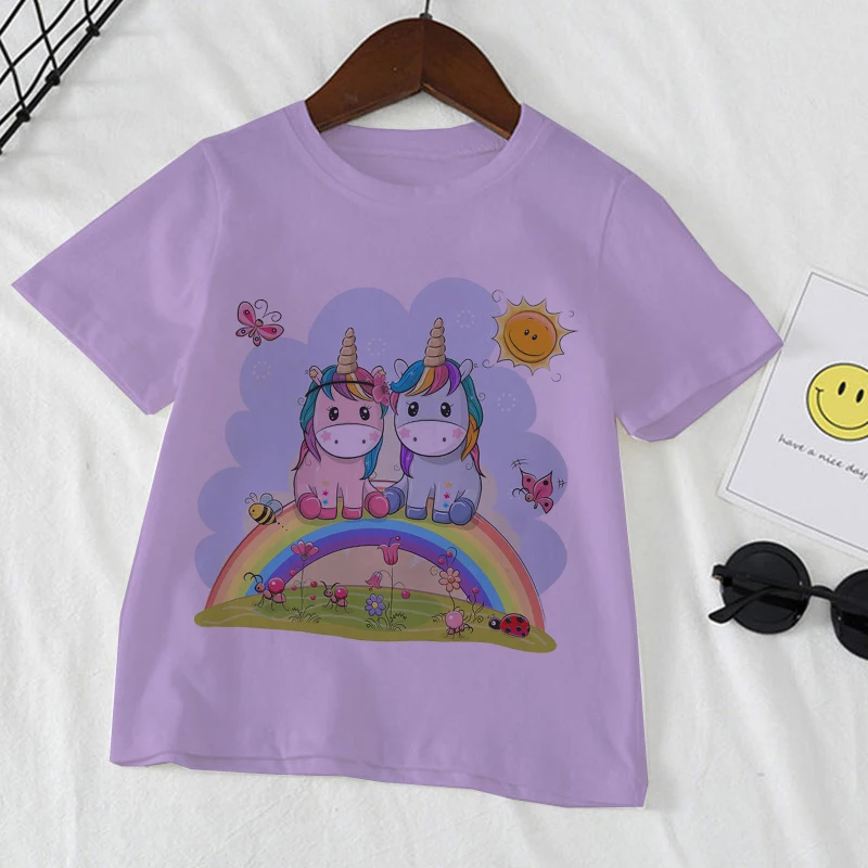 Футболка для мальчиков и девочек 2-9 лет, милый летний топ с коротким рукавом и принтом единорога, повседневная одежда для малышей и подростков, 2022
