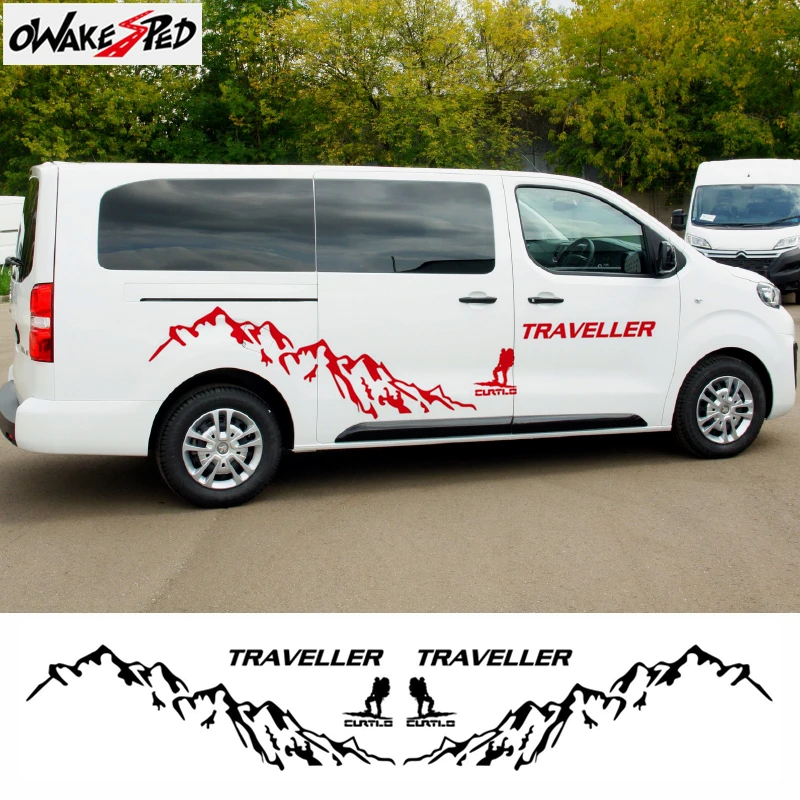 1 комплект, Наклейки для декора обеих боковых дверей, горный альпинист, спортивный стиль, виниловые наклейки для кузова автомобиля, автомобильные аксессуары для Peugeot Traveller