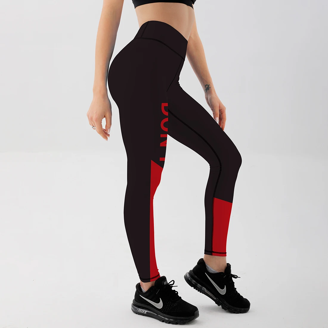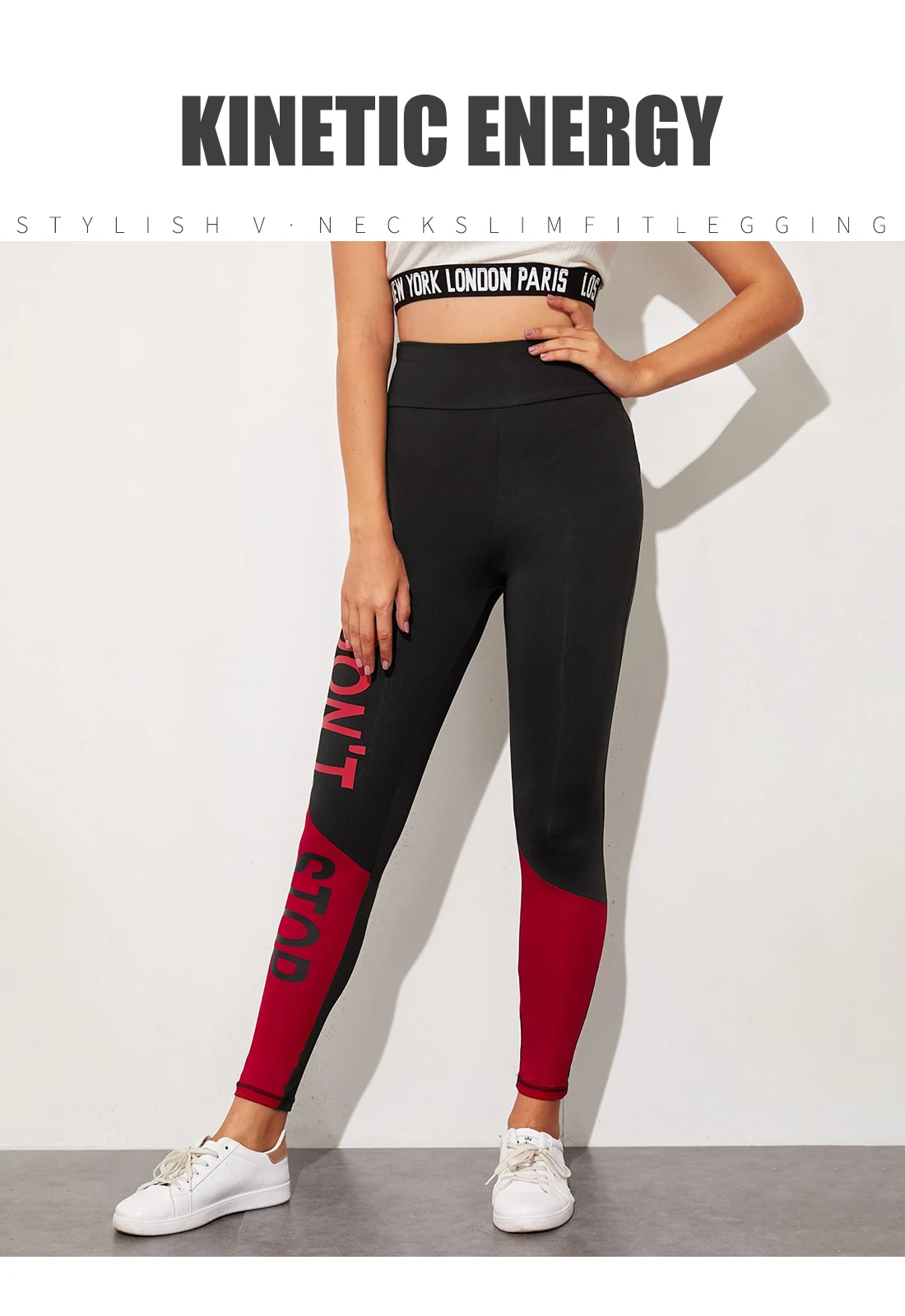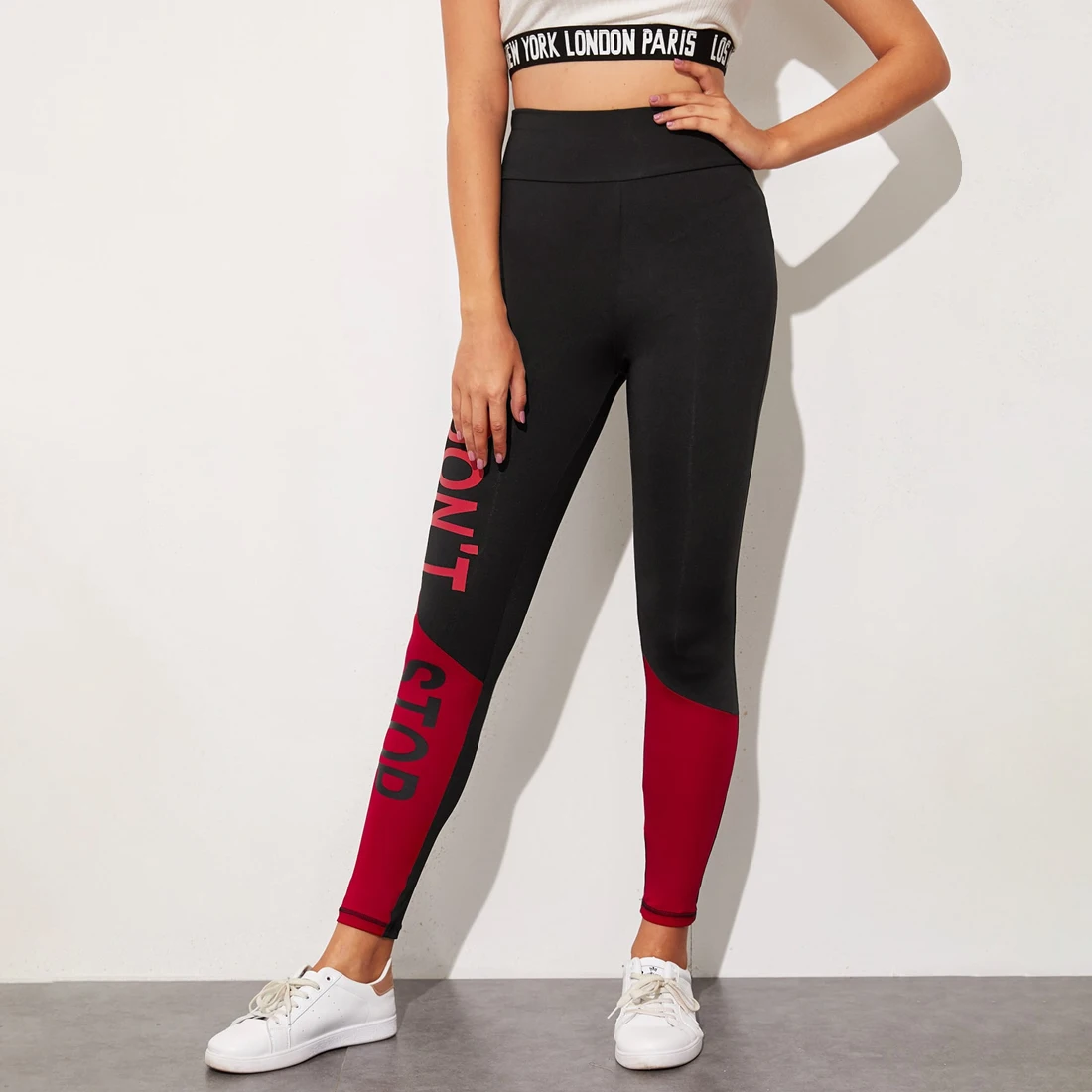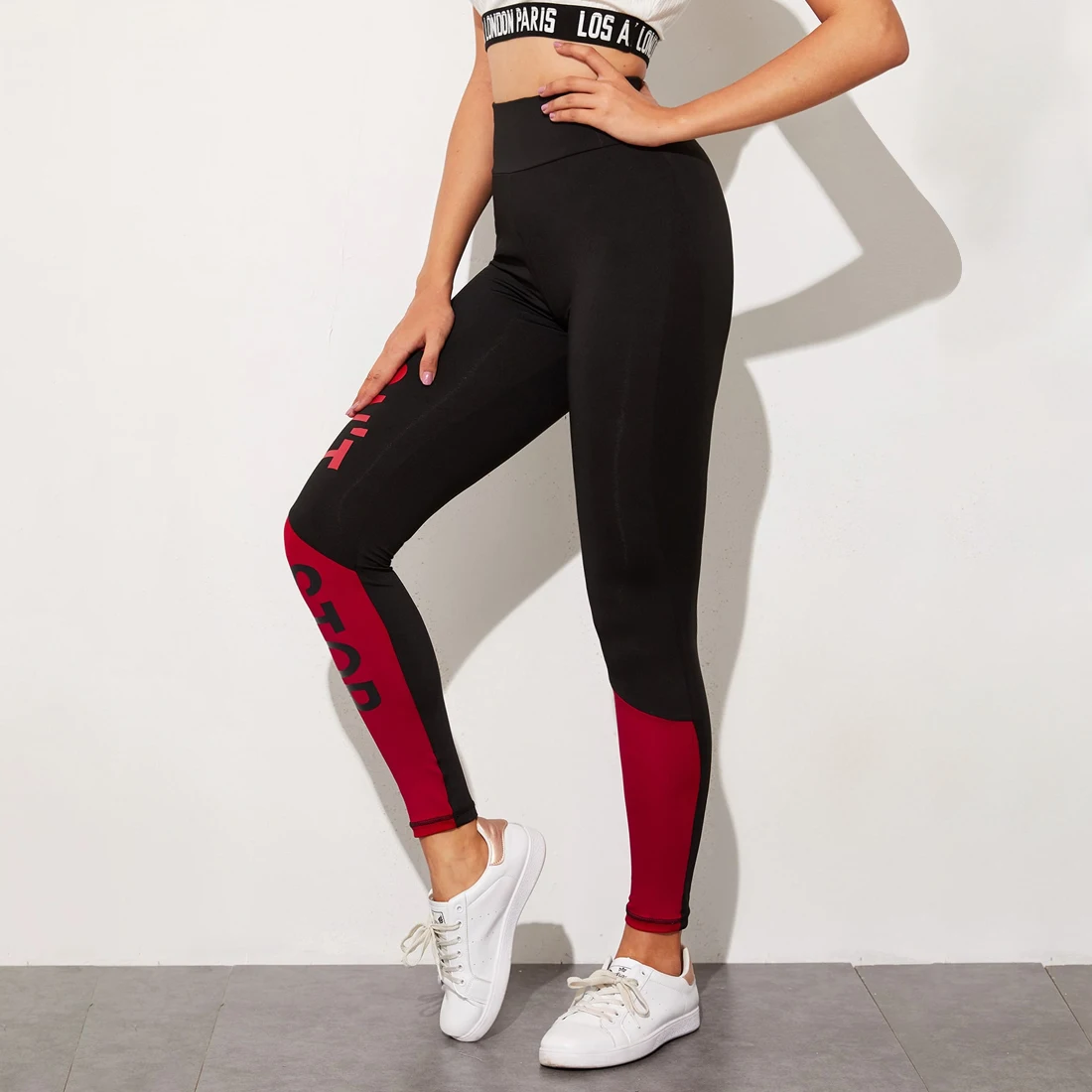 Леггинсы женские с буквенным принтом, простые повседневные длинные штаны с высокой талией для фитнеса, тренировок, красные черные