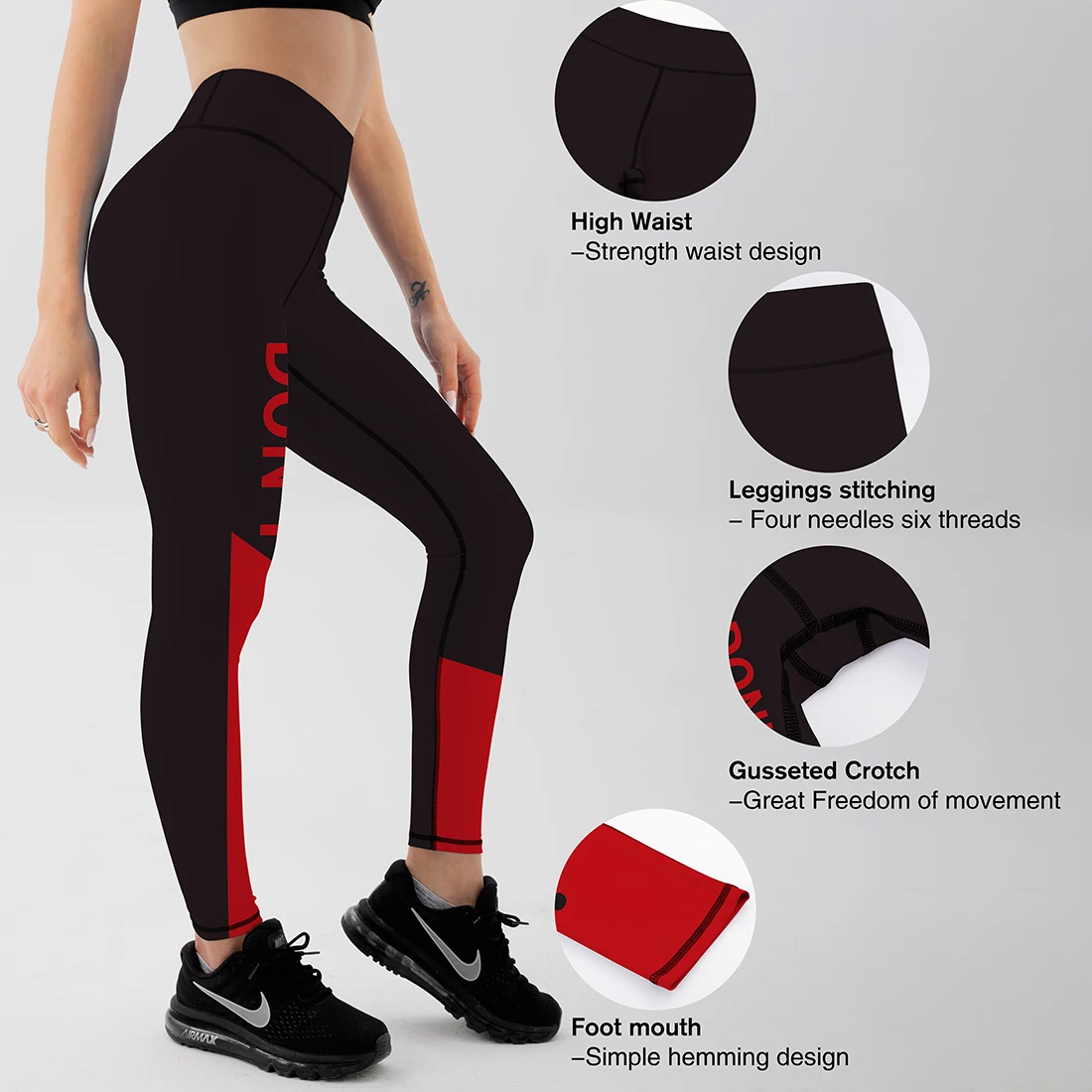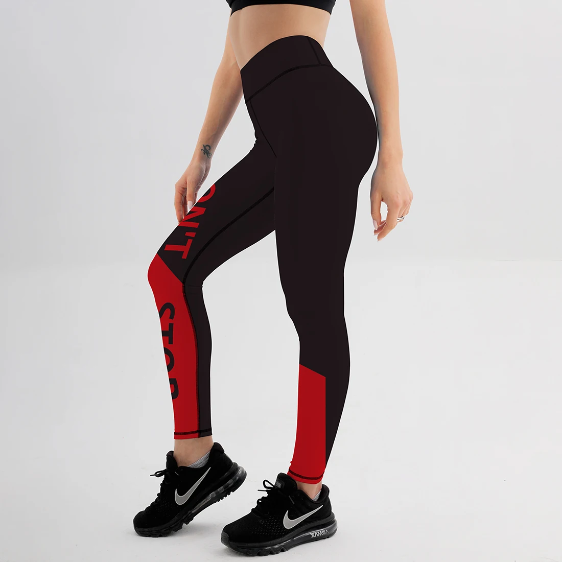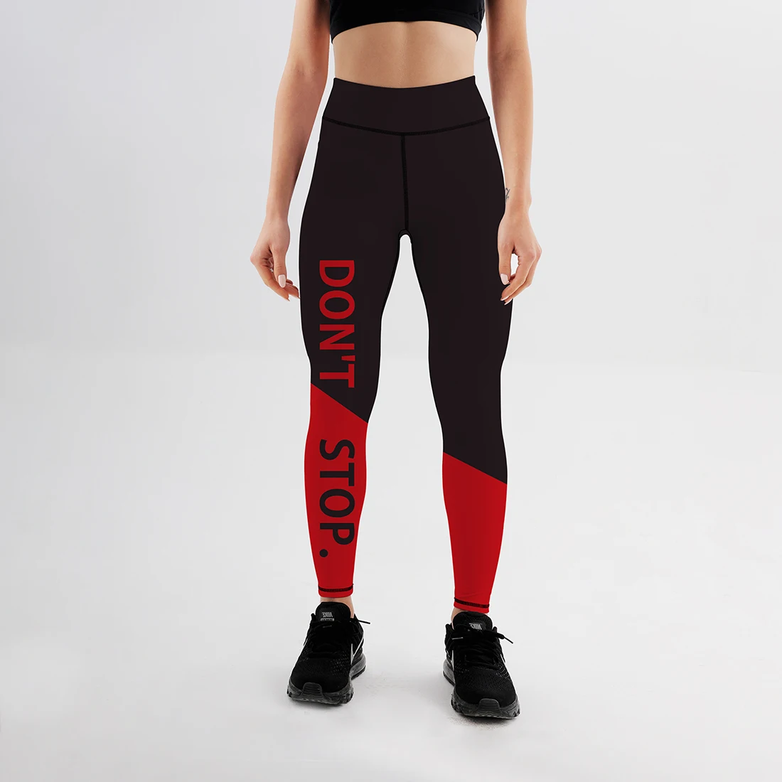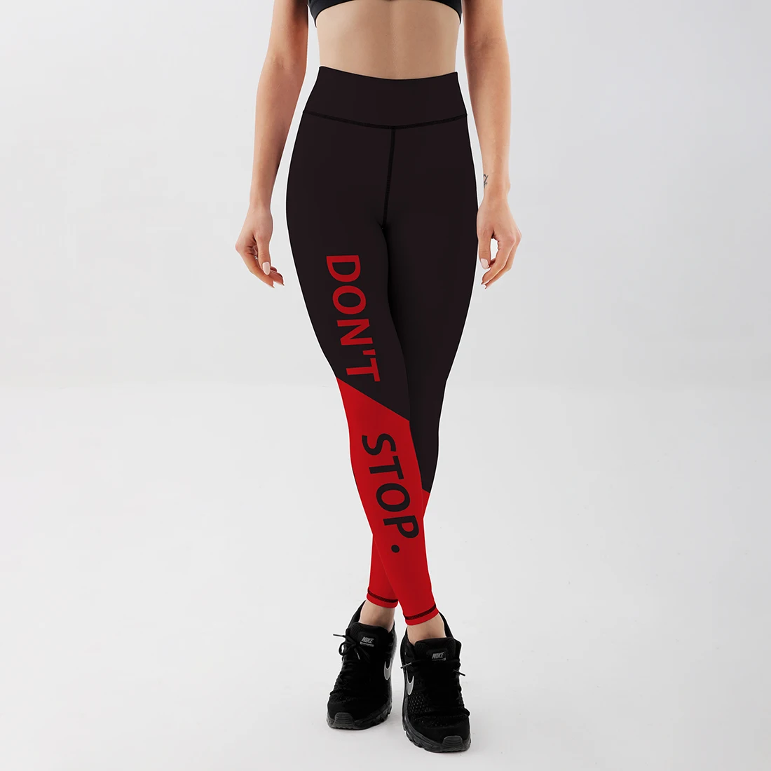 Леггинсы женские с буквенным принтом, простые повседневные длинные штаны с высокой талией для фитнеса, тренировок, красные черные