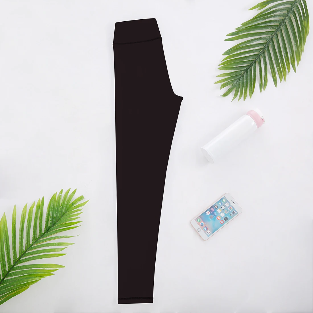 Леггинсы женские, черные, с цветочным принтом, с высокой талией