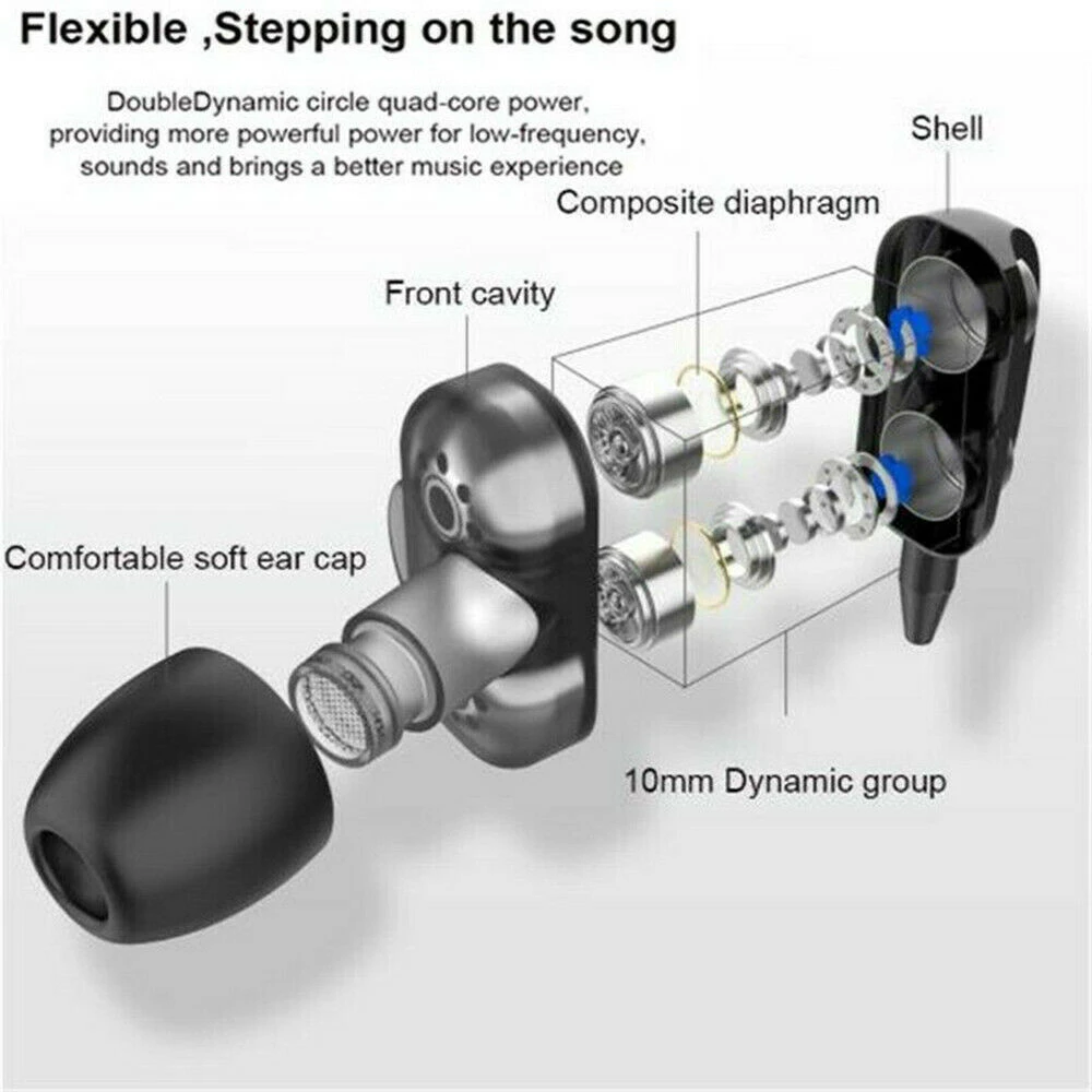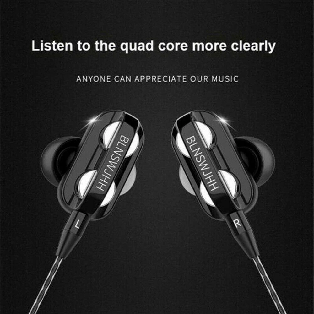 Беспроводные наушники 3,5 мм с тяжелыми басами, Hi-Fi стерео наушники-вкладыши, гарнитура с микрофоном, микрофоном, 4 динамика, аксессуары для телефона