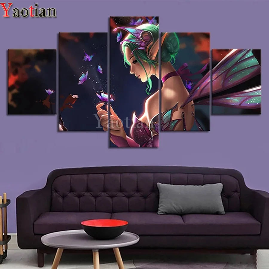 5 шт.компл. 5d Diy Алмазная Картина Бабочка и Fairy Elf вышивка стразами девушка 3d вышивки крестом камни в форме ромба круглый Алмазная мозаика