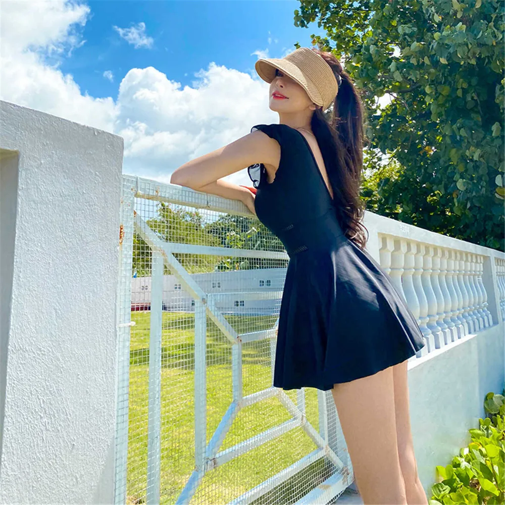 Женский слитный купальник в Корейском стиле, однотонный купальник с пуш-ап, монокини с юбкой, купальник с оборками, трикини, накладка, купальный костюм из шифона