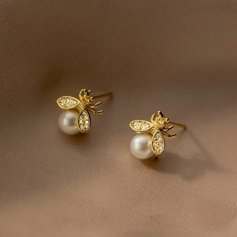 A00725 Милая божья коровка, жемчужные серьги-гвоздики для женщин в Корейском стиле из натуральной 925 стерлингового серебра обручальные насекомого, ювелирное изделие, подарок