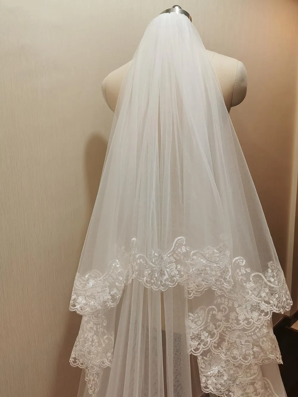 Высокое качество Neat кружева 2 слои, свадебная фата 2T 3 метры сва...