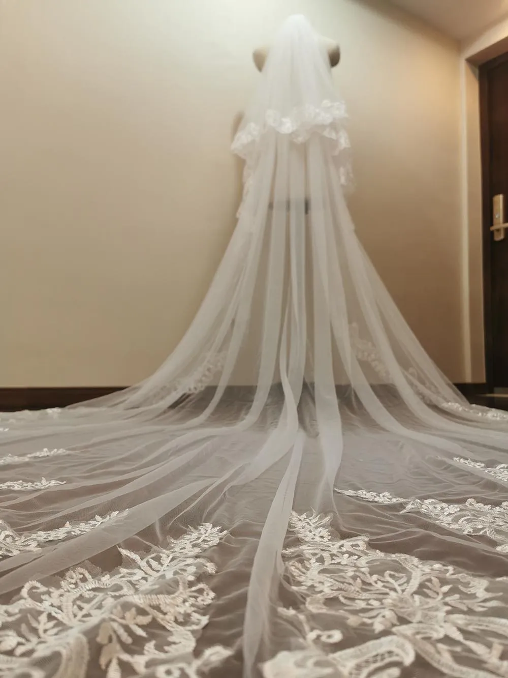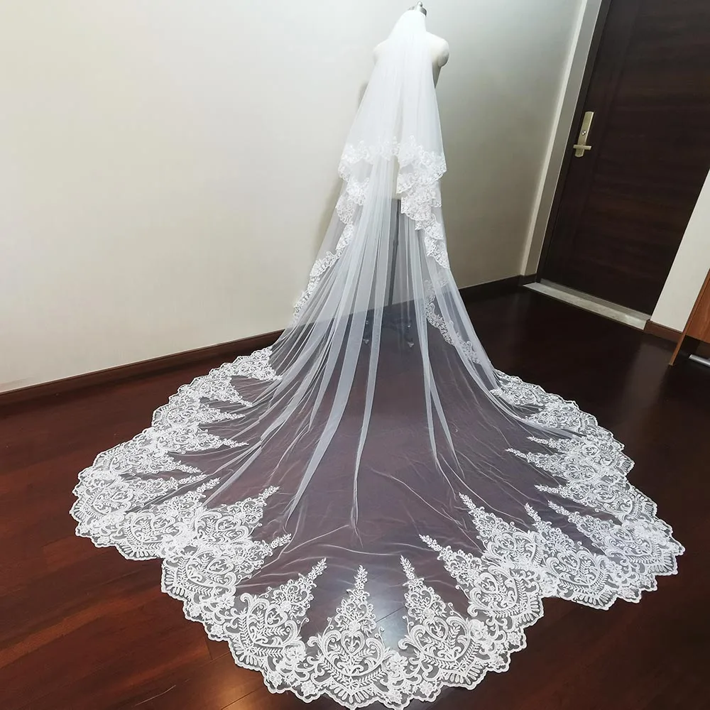 Роскошный длинный кружевной вуаль с расческой, 4 метра