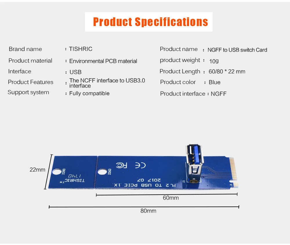 Адаптер-расширитель материнской платы TISHRIC NGFF M.2 на USB 3,0 PCIE