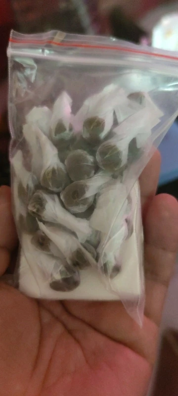 товар ждала около месяца.только вскрыла пакет и сразу запахло сильно вроде как травой какой то.наверно если эти шарики развернуть из бумажек,то запах будет ещё сильнее.Позже напишу про результат сжигания жира.В целом выглядит как на фото.