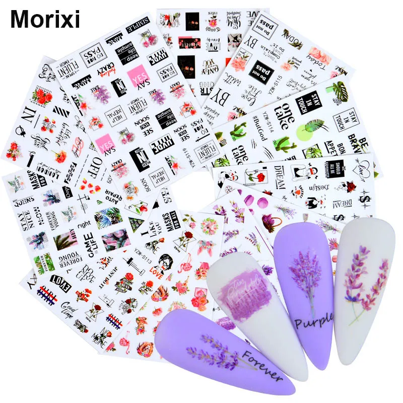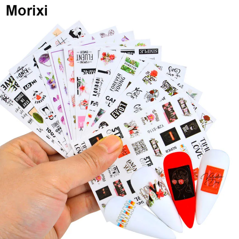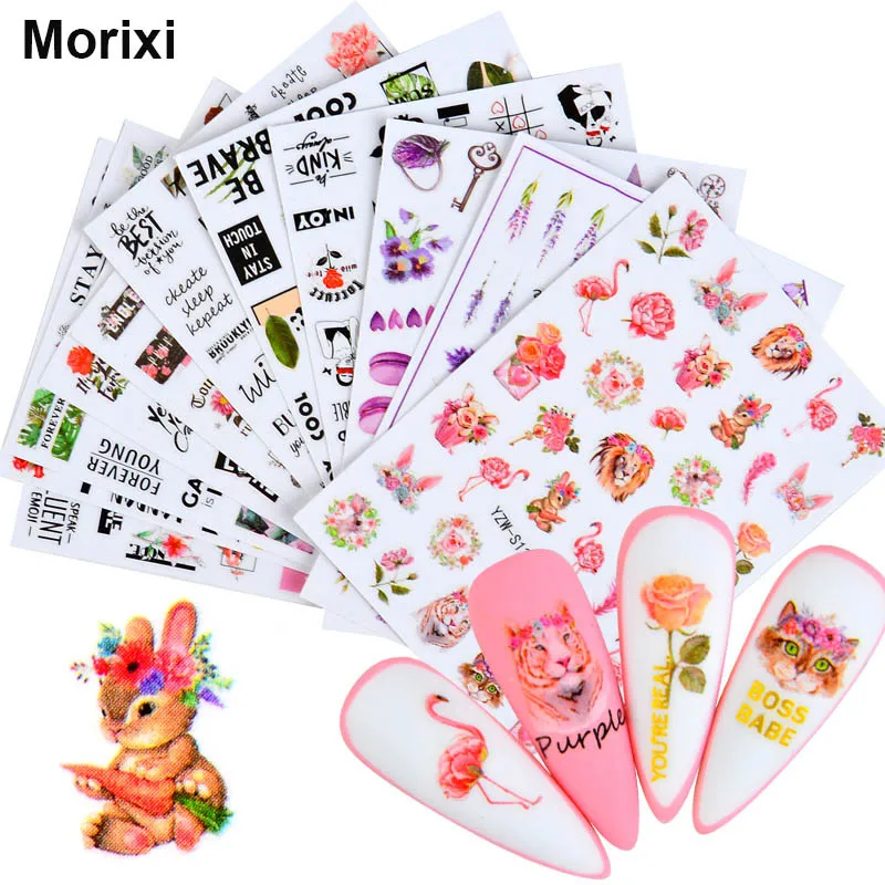 Полоски для дизайна ногтей Morixi большого размера с животными, буквами, лицом, растительным изображением, 3D украшение для маникюра, наклейки для ногтей FW090