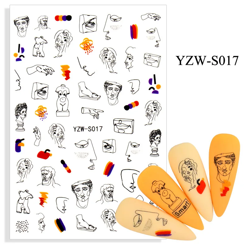 Наклейки для ногтей с буквами, цветами, растениями, лицевыми узорам...