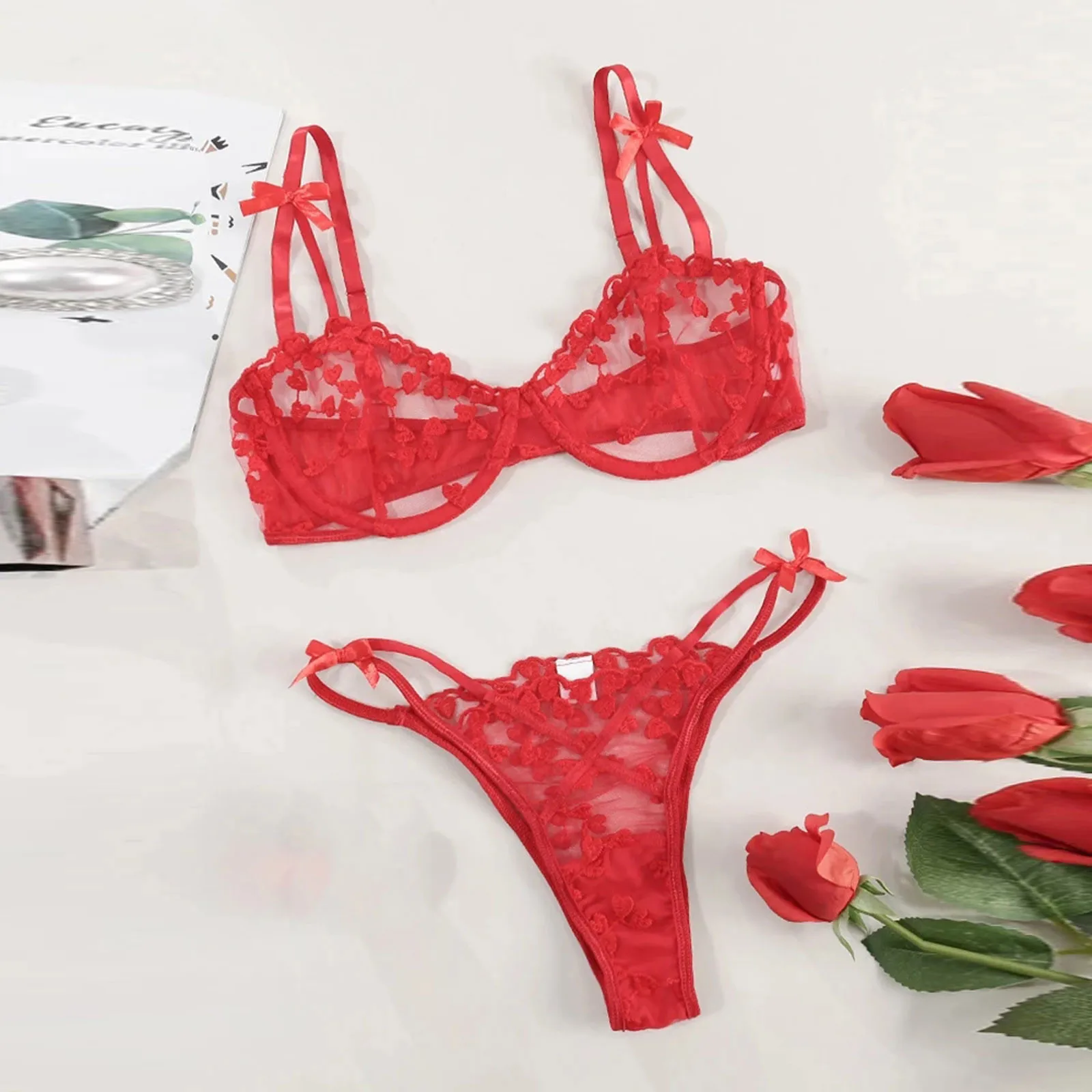 Комплект нижнего белья женский, кружевной, со стальными кольцами