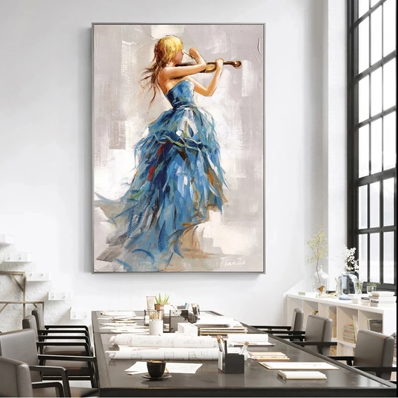 Фотообои на холсте с изображением девушки, играющей на скрипке и Танцующей Балерины, современное художественное настенное украшение для гостиной и дома, роспись (без рамки