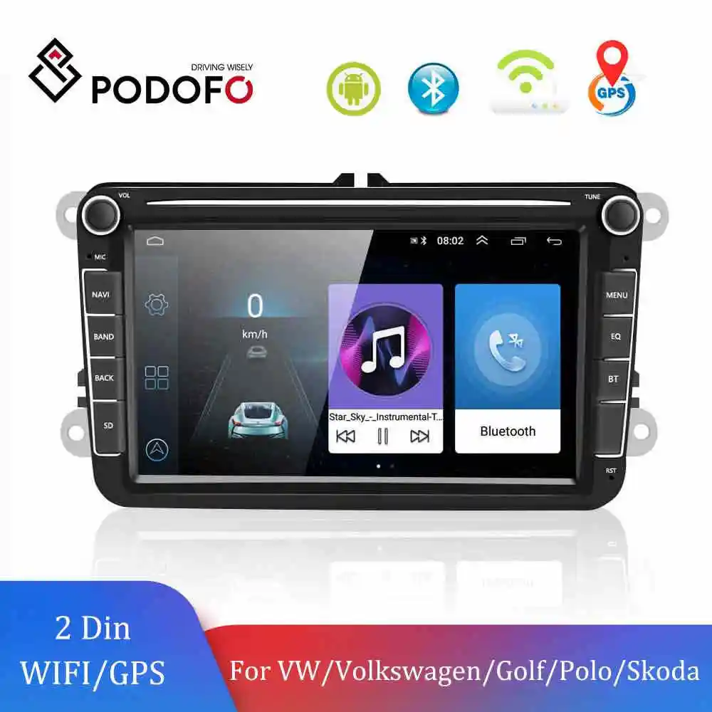 Podofo автомобильное радио GPS Android 10 мультимедийный плеер 2din 8 ''Bluetooths камера для VWVolkswagenGolfPoloPassatb7b6SEATSkod