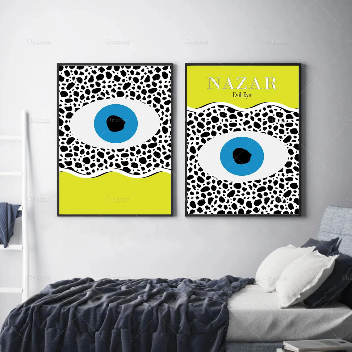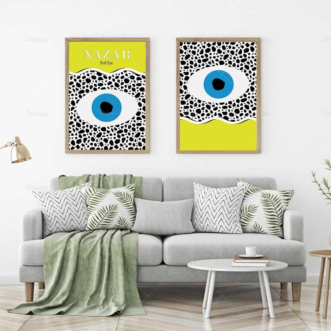 Набор из 2 предметов злый глаз-домашняя галерея 2 предметов искусства злый глаз-синий духовный набор-современные Плакаты для домашнего декора настенные художественные принты