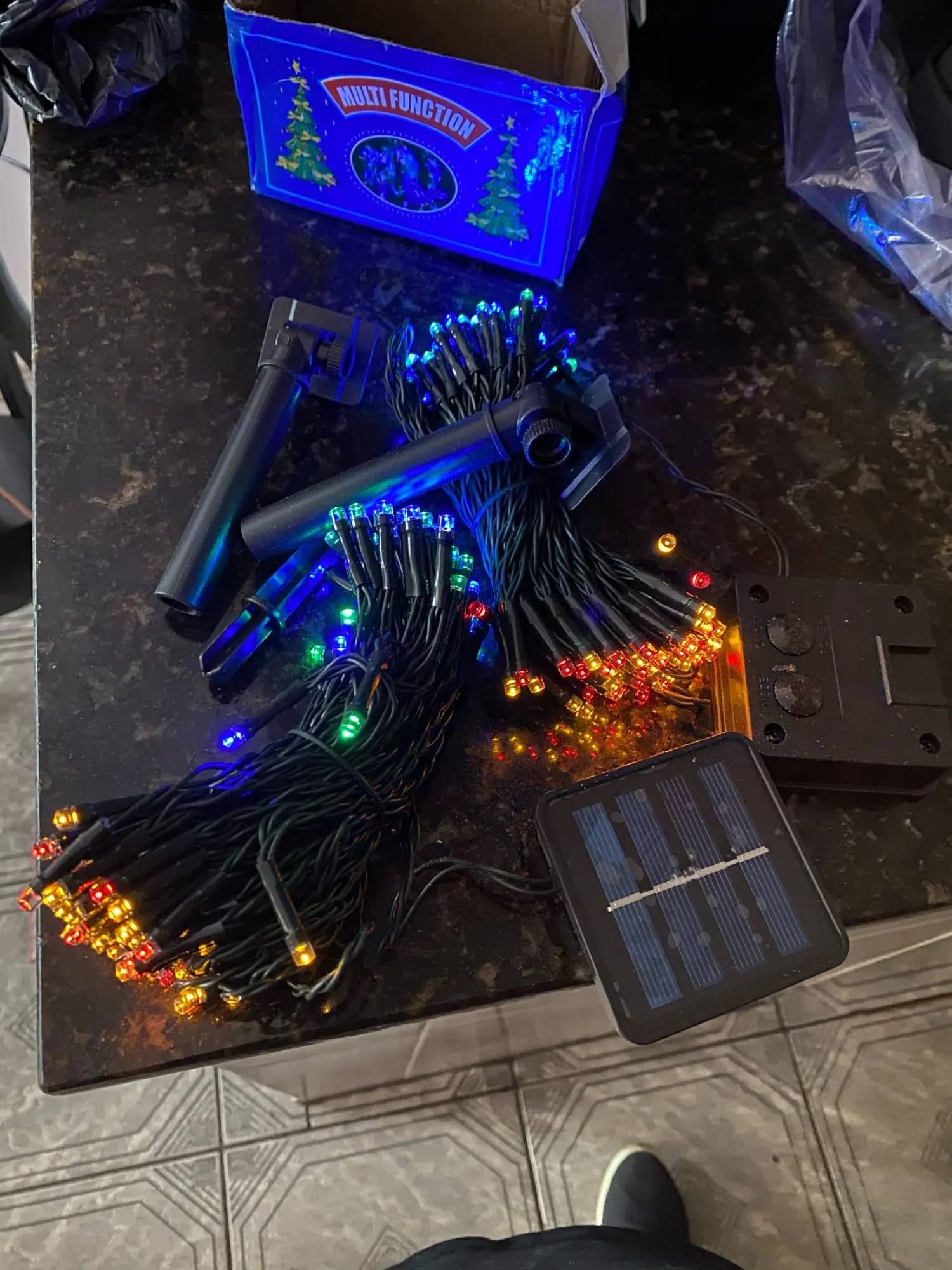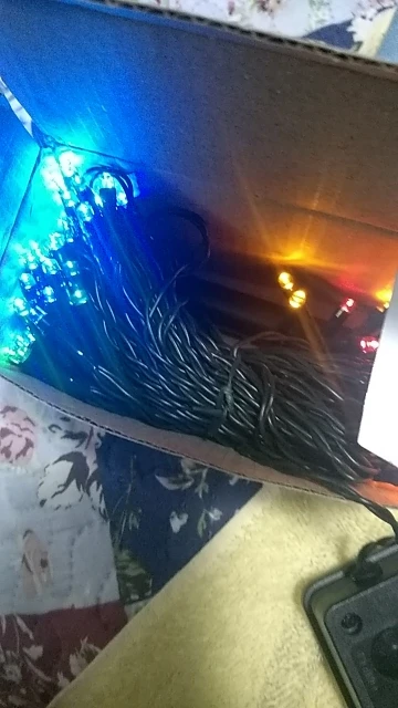 Коробка, содержащая разрушенные огни, к счастью, лампочки работают.