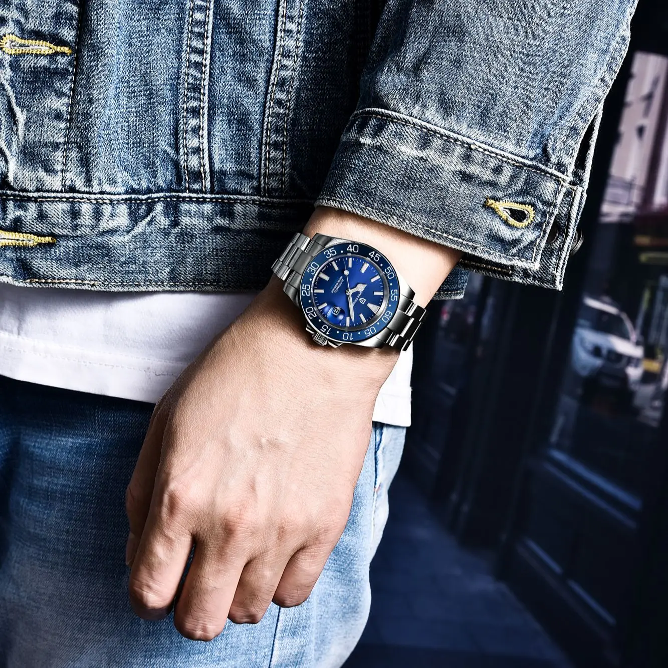 Часы PAGANI DESIGN 2021 Мужские механические, брендовые автоматические деловые Водонепроницаемые Синие, из нержавеющей стали